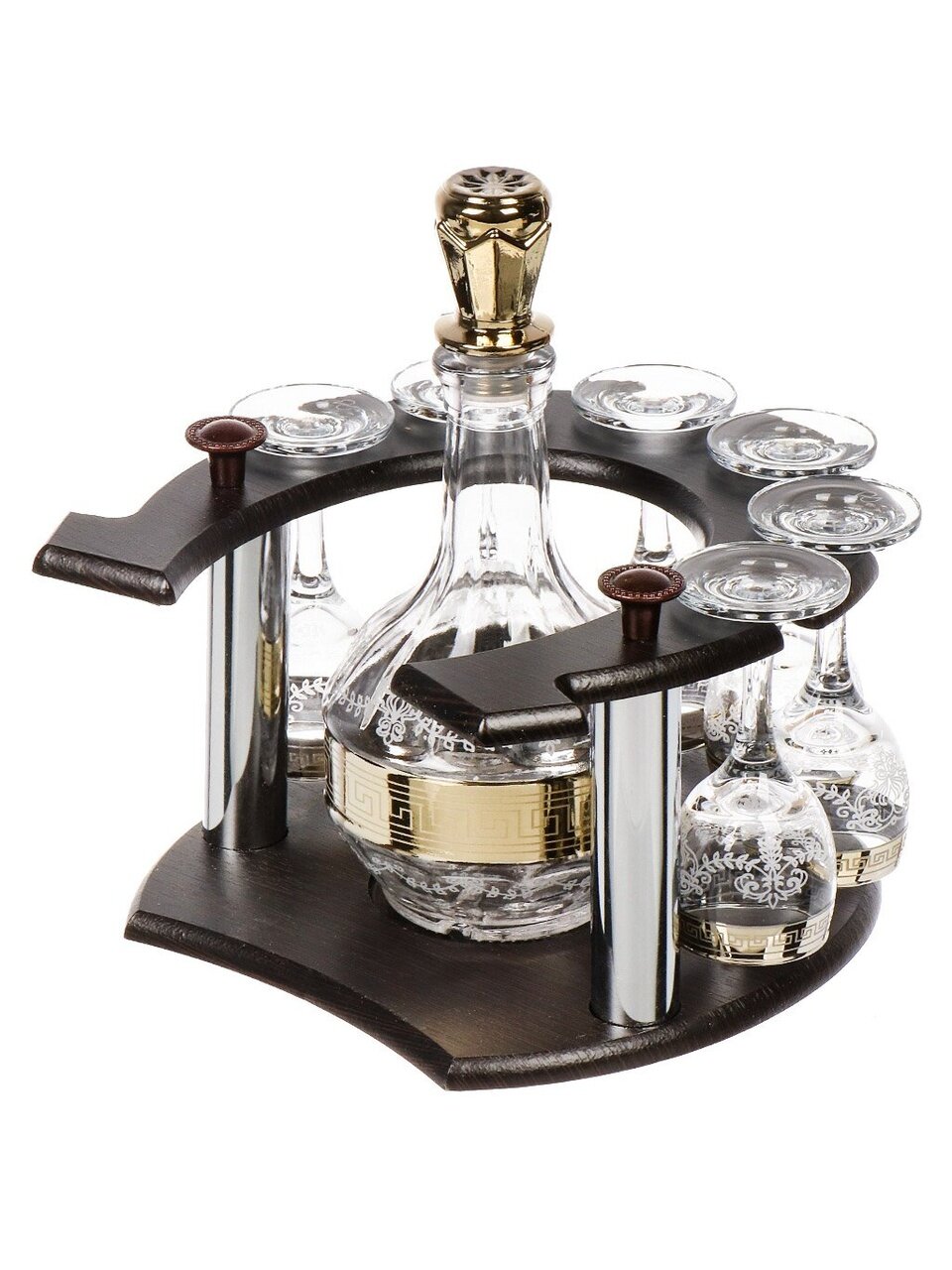 Набор для спиртного будет отличным выбором для ценителей изысканного стиля. Изящный дизайн и утонченный стиль этого набора будут постоянно притягивать взгляды гостей, а эффектная подача на барной стойке обязательно произведет впечатление.