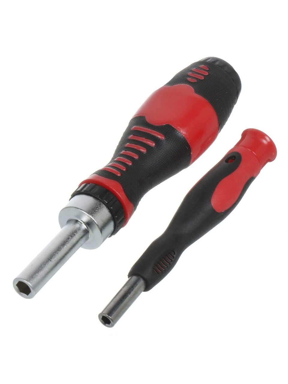 - торцевые головки и отвертки в комплекте: позволяют выполнять широкий спектр задач;