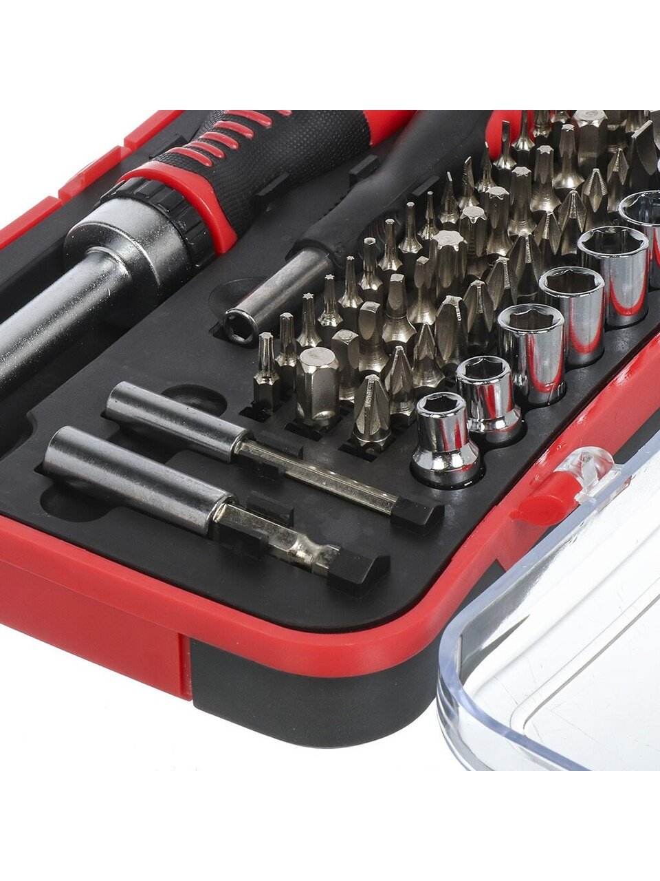 Набор включает 65 предметов, среди которых вы найдете торцевые головки и отвертки, а также ключи шестигранные. Это идеальный выбор для тех, кто ценит функциональность и простоту в использовании. Несмотря на отсутствие гаечных ключей, молотка и других инструментов, данный комплект полностью справляется с большинством бытовых задач.
