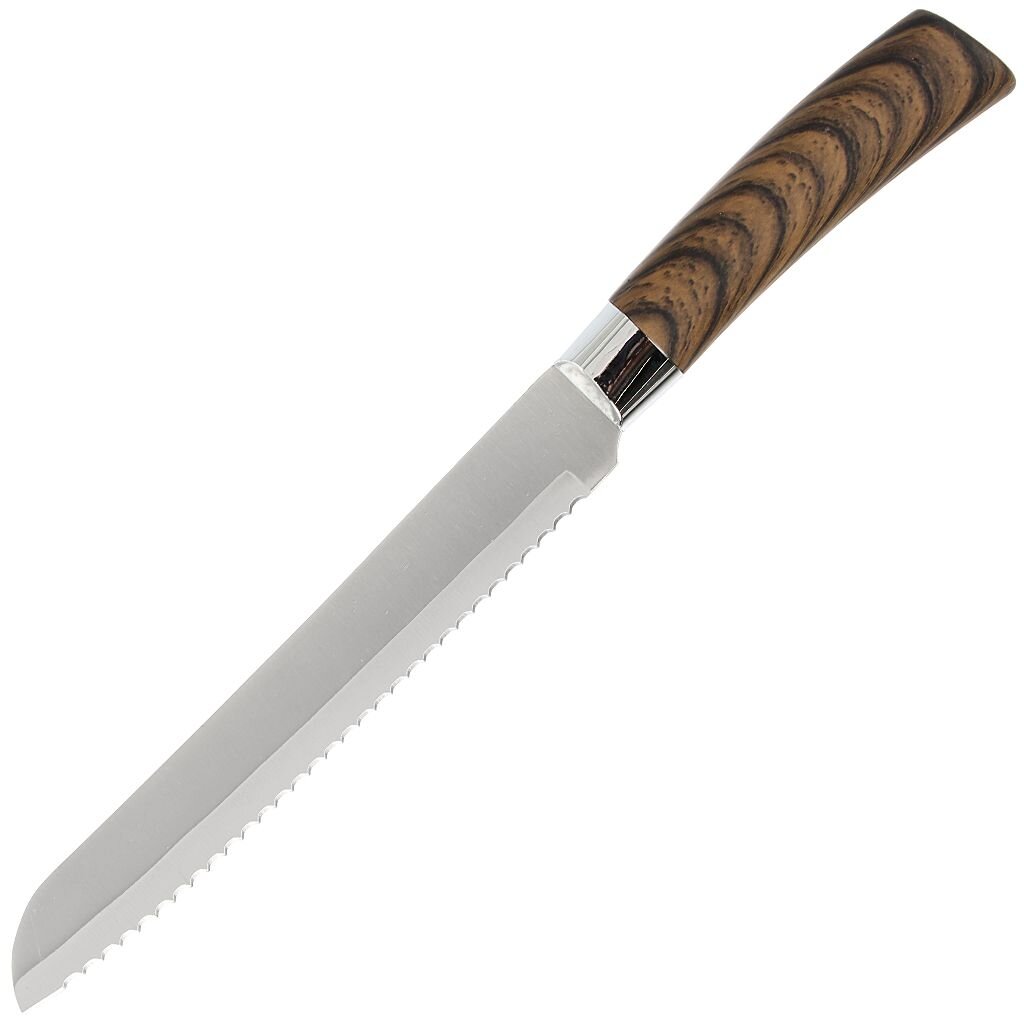 - универсальная комплектация: шеф-нож, нож для овощей, универсальный нож, хлебный нож, разделочный нож;