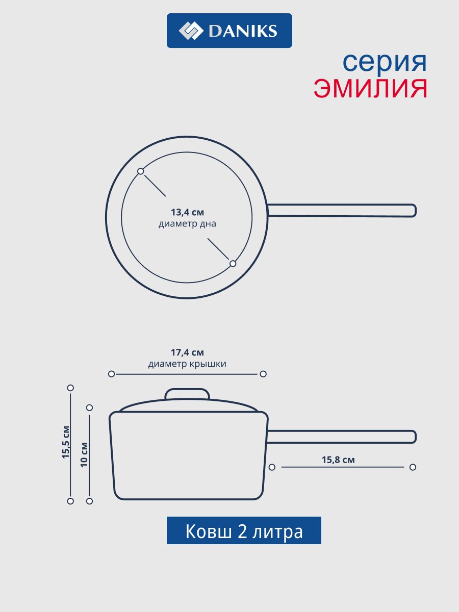Ищете, какой набор посуды выбрать для индукционной плиты или универсального использования? Daniks Эмилия — это комплект из 6 предметов: две кастрюли (2,8 и 5 л), ковш (2 л) и стеклянные крышки. Корпус из нержавеющей стали устойчив к коррозии, не впитывает запахи, легко моется и сохраняет внешний вид даже при интенсивном использовании. Такой набор посуды отлично подойдет для приготовления супов, гарниров, соусов, а также для стерилизации и заготовок на даче.
