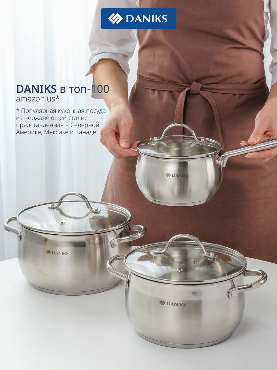 Набор посуды Daniks Эмилия: 6 предметов из нержавеющей стали для индукции и любых плит. Практичное решение для кухни, дачи и подарка.