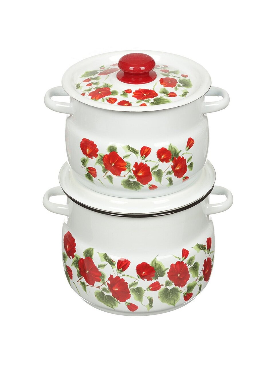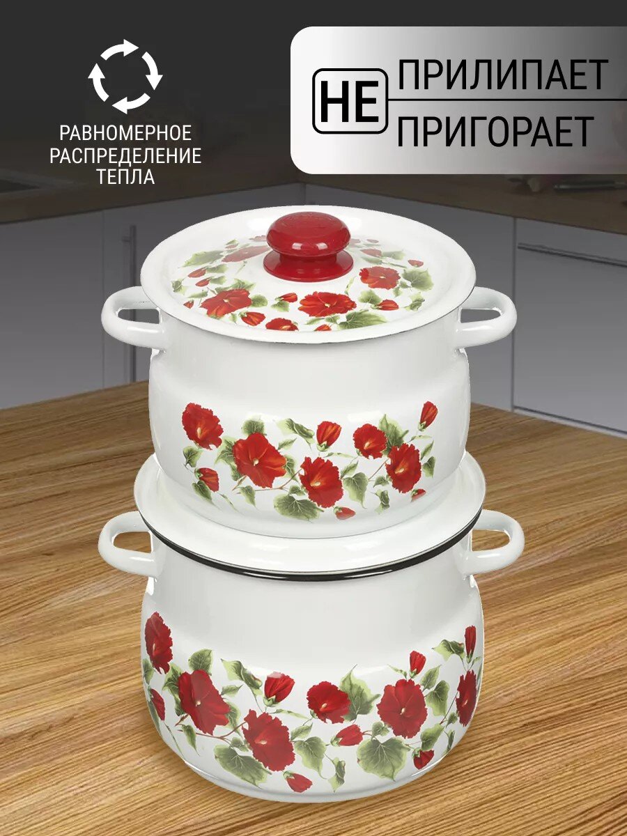 Набор эмалированной посуды Сибирские товары Рамо 10 (4 предмета, кастрюли 4 и 5,5 л) — идеальное решение для дома и дачи: долговечность, стиль, доступная цена.