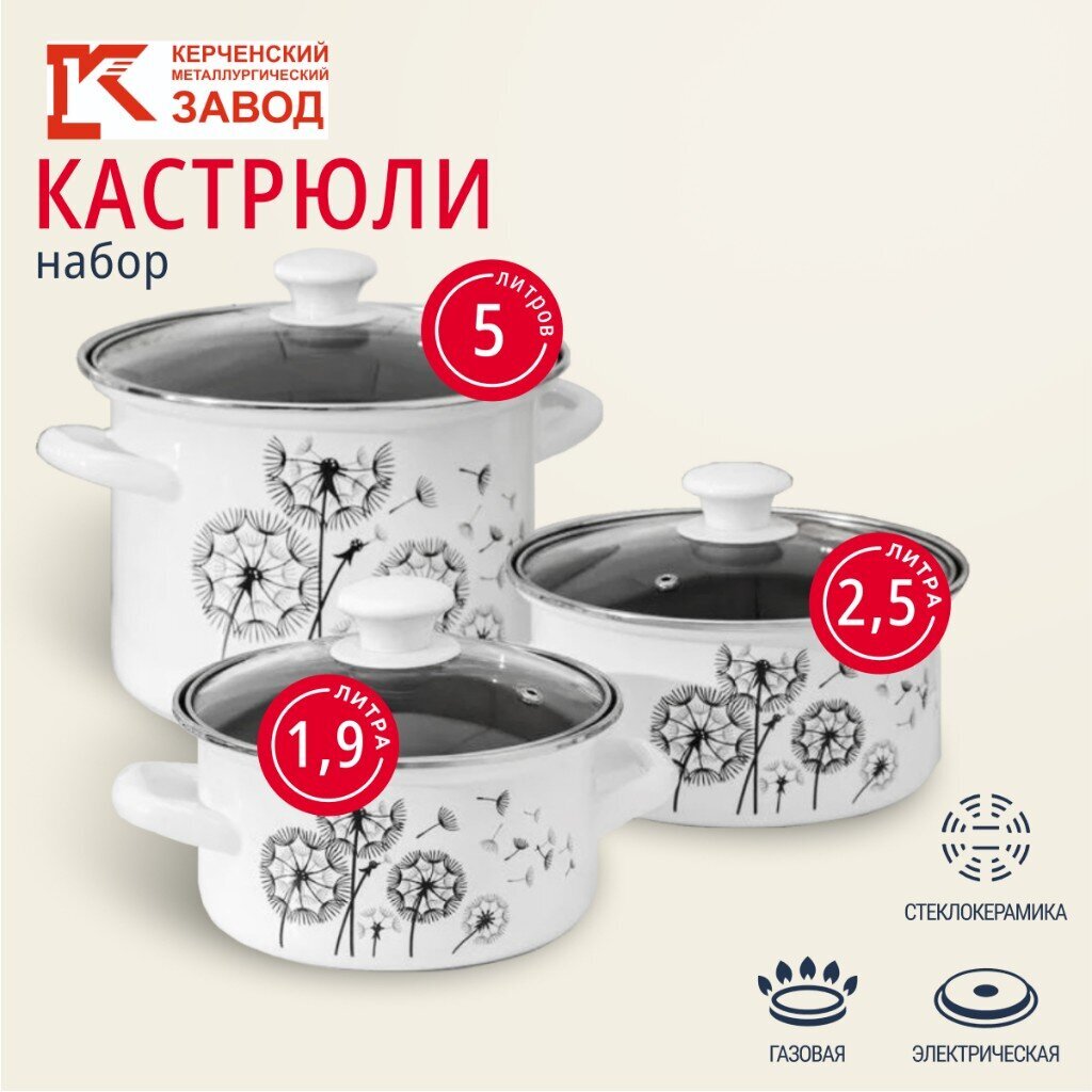 Вы можете приобрести «Набор посуды эмалированная сталь, 6 предметов, кастрюли 1.9,2.5,5 л, индукция, Керченский металлургический завод, Адажио 5-1 Люкс, белый» и другие товары в нашем интернет-магазине в Таганроге по низким ценам и с бесплатным самовывозом.