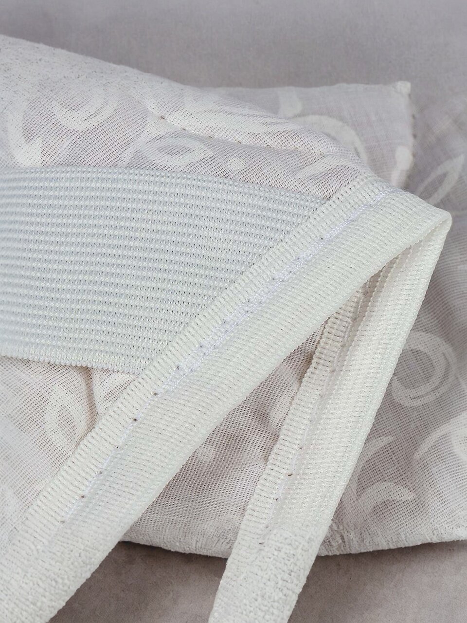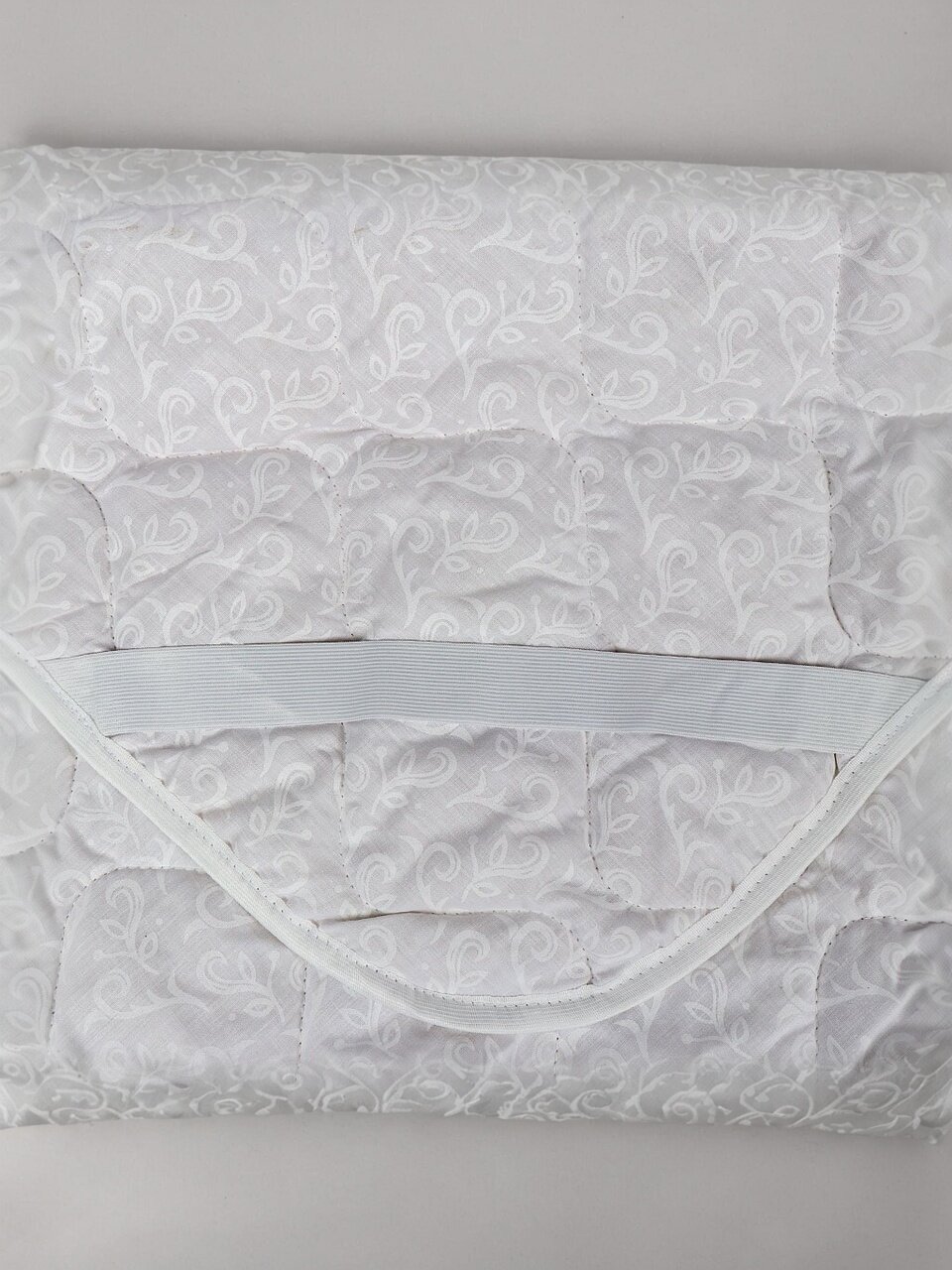 С помошью резинки(расположена по углам) наматрасник крепится к матрасу, надежно фиксируя.