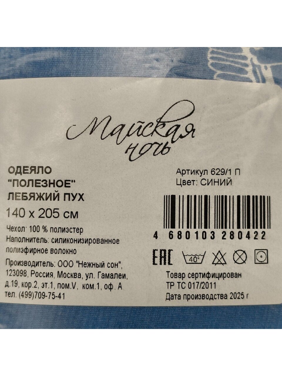 Наполнитель - 100% полиэстер.
