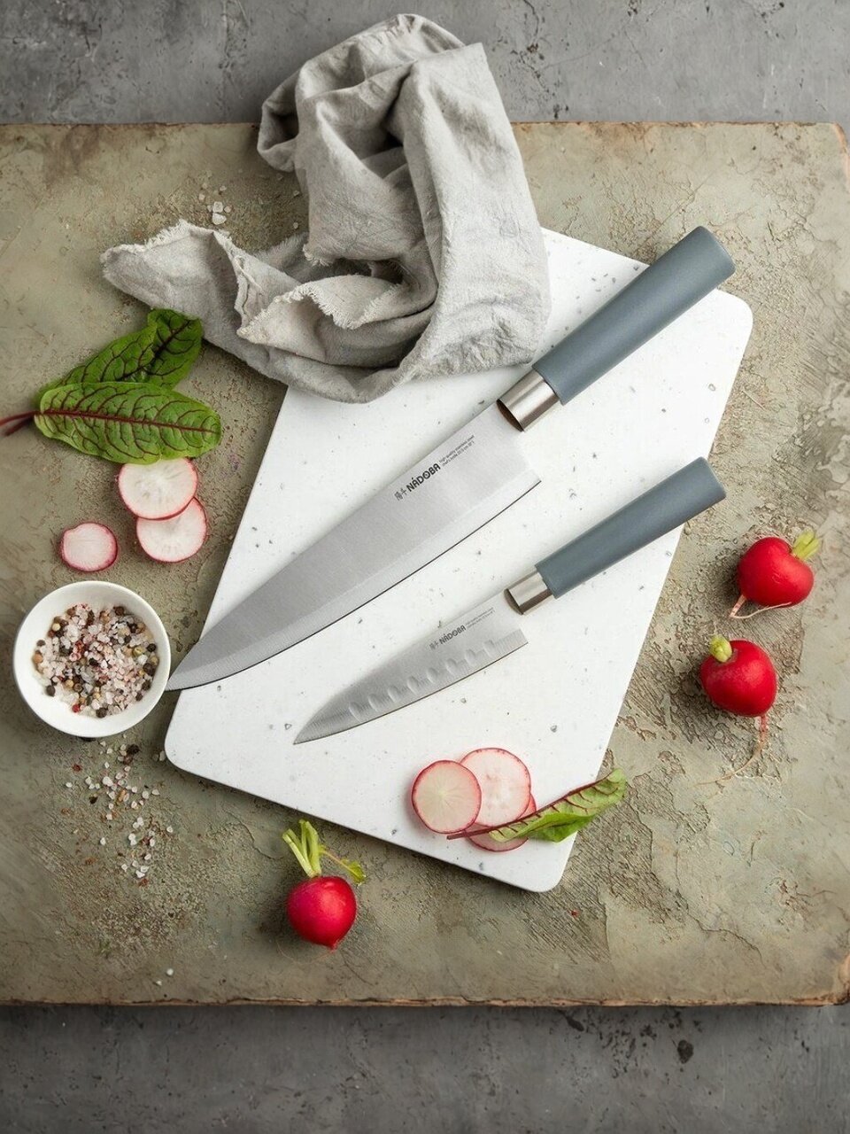 Нож Nadoba Haruto изготовлен из высококачественной нержавеющей стали, которая обеспечивает долговечность и остроту лезвия. Благодаря удобной ручке из прочных материалов работать с этим ножом становится ещё приятнее и комфортнее. Японский дизайн ножа Haruto сочетает в себе традиции и инновации, создавая неповторимый стиль, который станет украшением вашей кухни. Не упустите возможность приобрести этот великолепный нож и добавить изысканности своим кулинарным творениям.