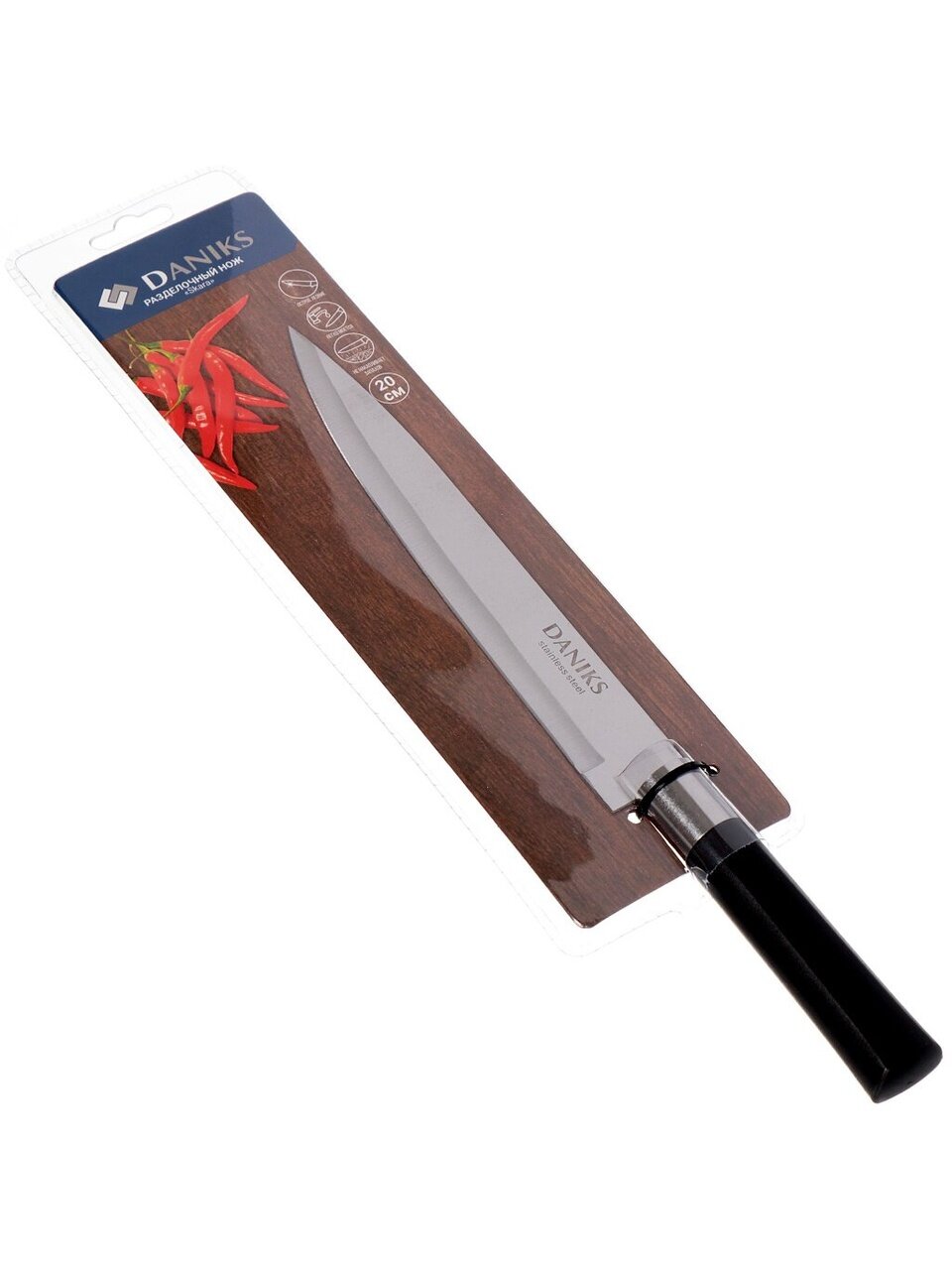 Нож Daniks изготовлен из высококачественной нержавеющей стали. Имеет длинный узкий клинок, предназначен для разделки мяса и рыбы. Ручка сделана из пластика, нож лежит в руке удобно и не скользит.