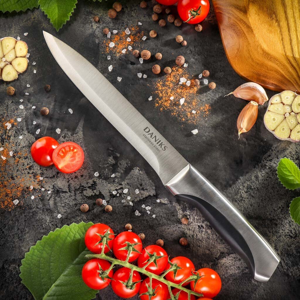 Вы можете приобрести «Нож кухонный Daniks, Мрамор, для мяса, нержавеющая сталь, 20 см, рукоятка сталь, YW-A156-SL» и другие товары в нашем интернет-магазине в Армавире по низким ценам и с бесплатным самовывозом.