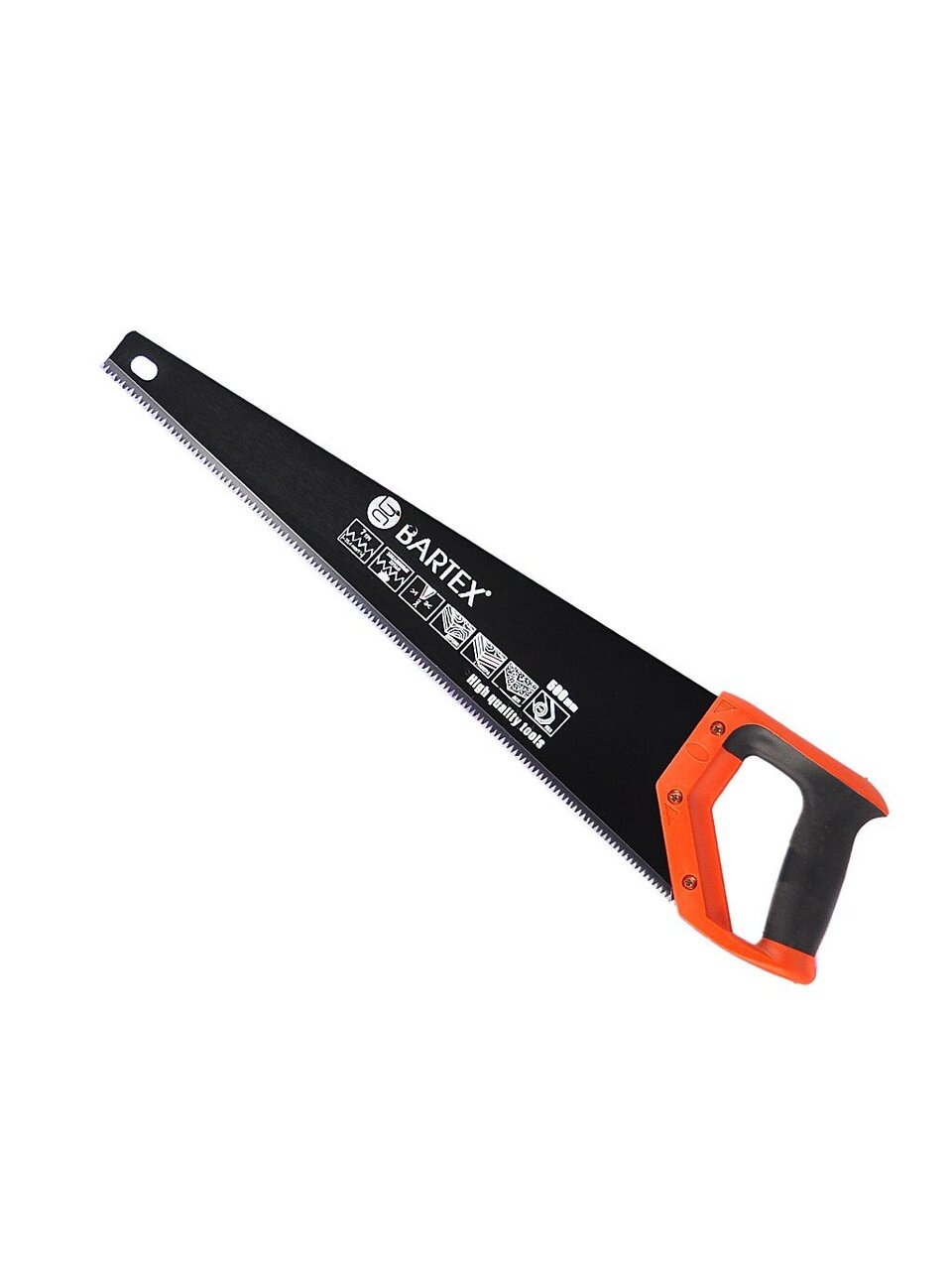 Ножовка по дереву Bartex – незаменимый инструмент для владельцев частных домов. Это отличный помощник для поддержания эстетичного вида загородного или приусадебного участка. Благодаря ножовке Bartex уровень Ваших столярных, плотницких или садовых работ станет на порядок выше при тех же временных затратах. Удобная прорезиненная рукоятка не допустит выскальзывания инструмента. Даже спустя продолжительное время работы руки мастера не почувствуют усталости, благодаря комфортному захвату.