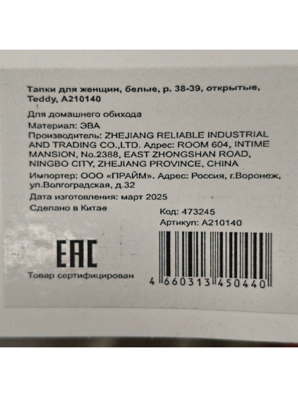 Вы можете приобрести «Тапки для женщин, белые, р. 38-39, открытые, Teddy, A210140» и другие товары в нашем интернет-магазине в Ельце по низким ценам и с бесплатным самовывозом.