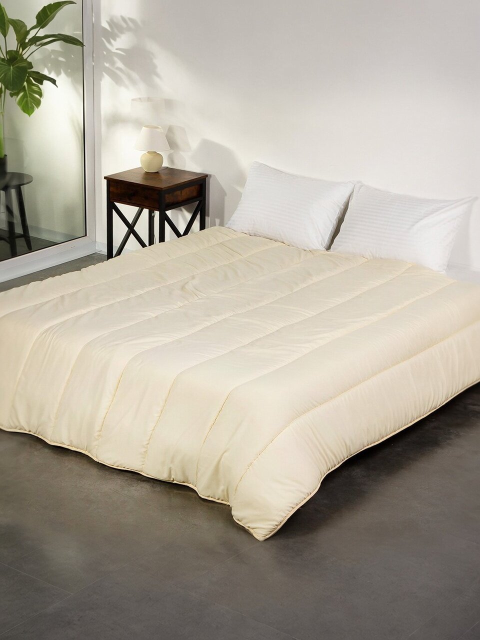 Одеяло евро 200х220 см из овечьей шерсти — всесезонный комфорт для сна: натуральный наполнитель, оптимальная плотность 250 г/м2, стиль и практичность для дома и дачи.