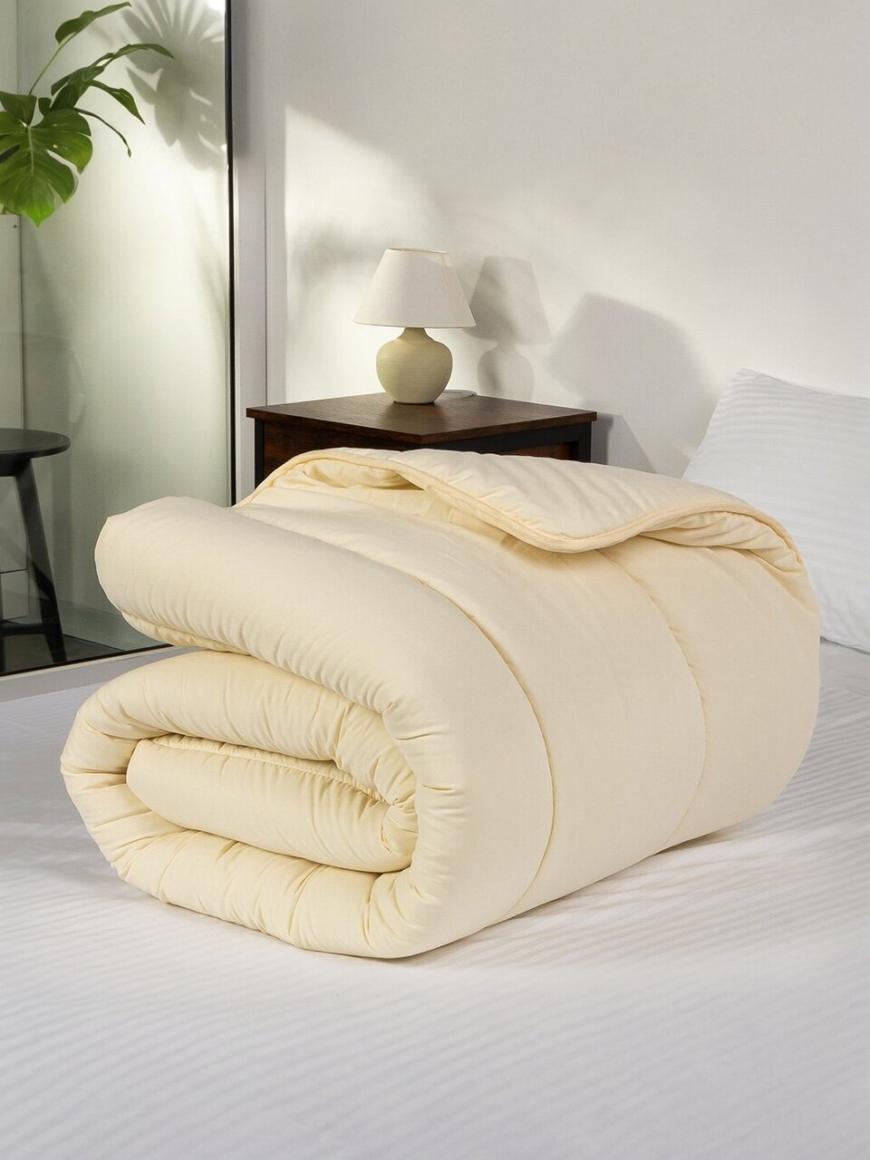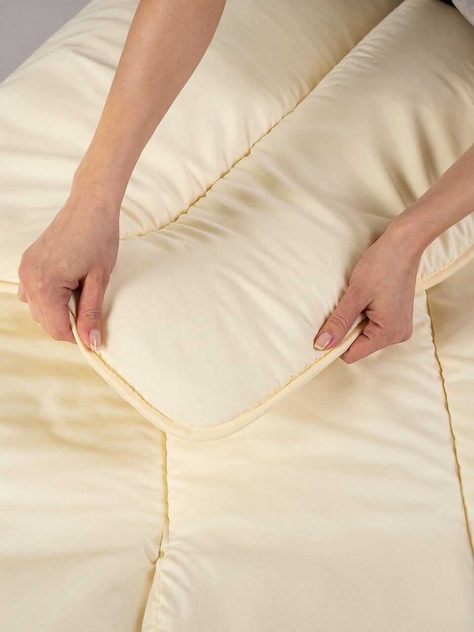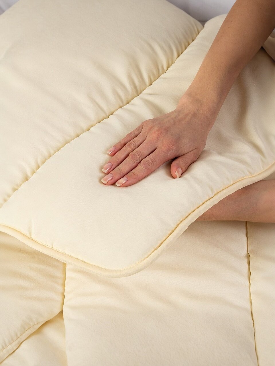 Часто спрашивают, чем отличается одеяло из овечьей шерсти от синтетических аналогов. Овечья шерсть естественно регулирует влажность и температуру, не электризуется и надолго сохраняет форму. Если вы ищете, какое одеяло лучше для дачи или что выбрать для подарка, обратите внимание на универсальный размер евро и современный бежевый дизайн. Одеяло подходит для круглогодичного использования, легко помещается в стандартном бельевом шкафу и не требует специального ухода.