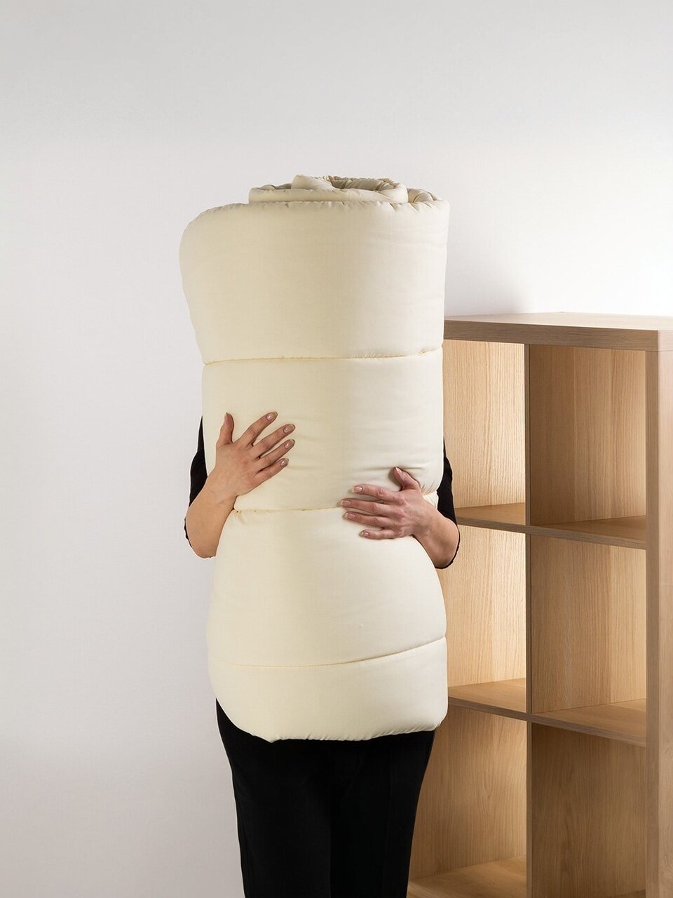 Чехол из 100% полиэстера не накапливает пыль, легко стирается, а натуральная шерсть обладает гипоаллергенными свойствами.
