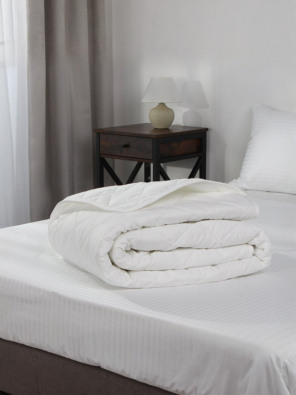 - Уникальная легкость — облегчённое одеяло с имитацией лебяжьего пуха, не вызывает аллергию, подходит для лета и межсезонья