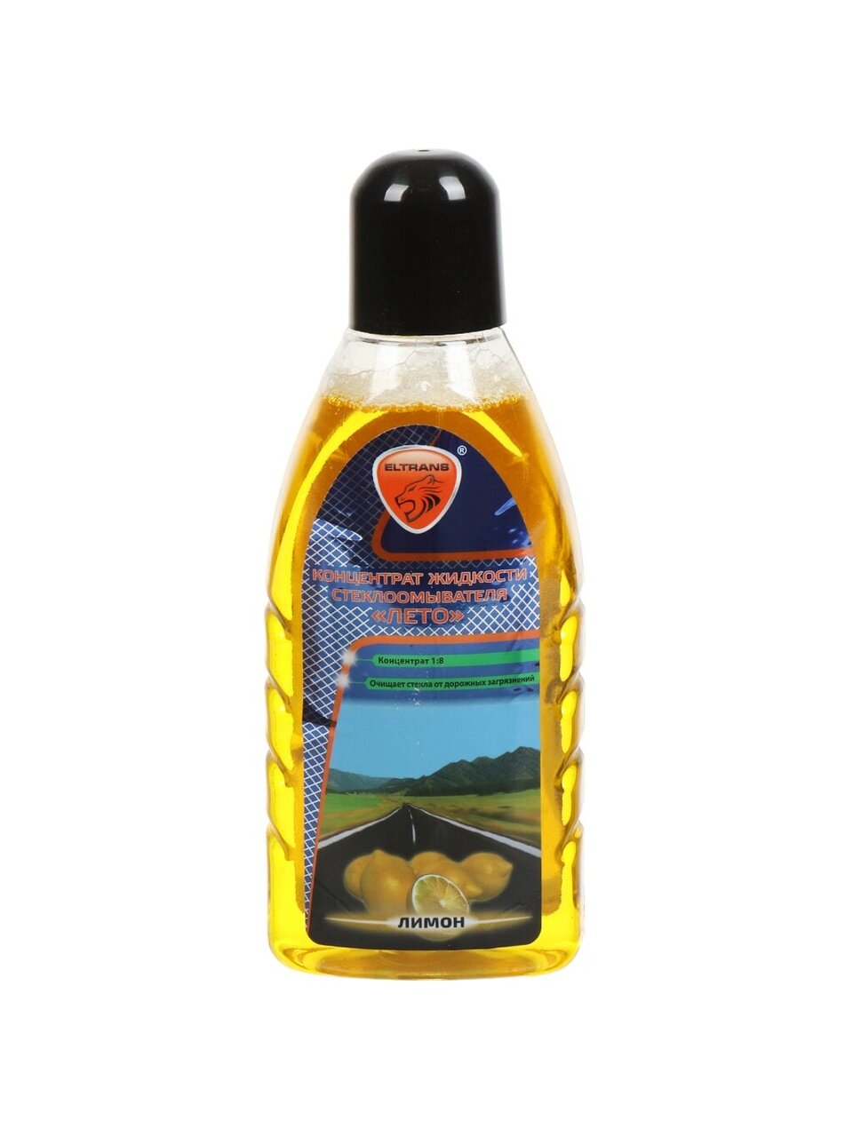 Омыватель стекол Eltrans Лимон предназначен для смешивания с водой и использования при температуре выше +1 °С. 1 флакон рассчитан на 4 л воды.