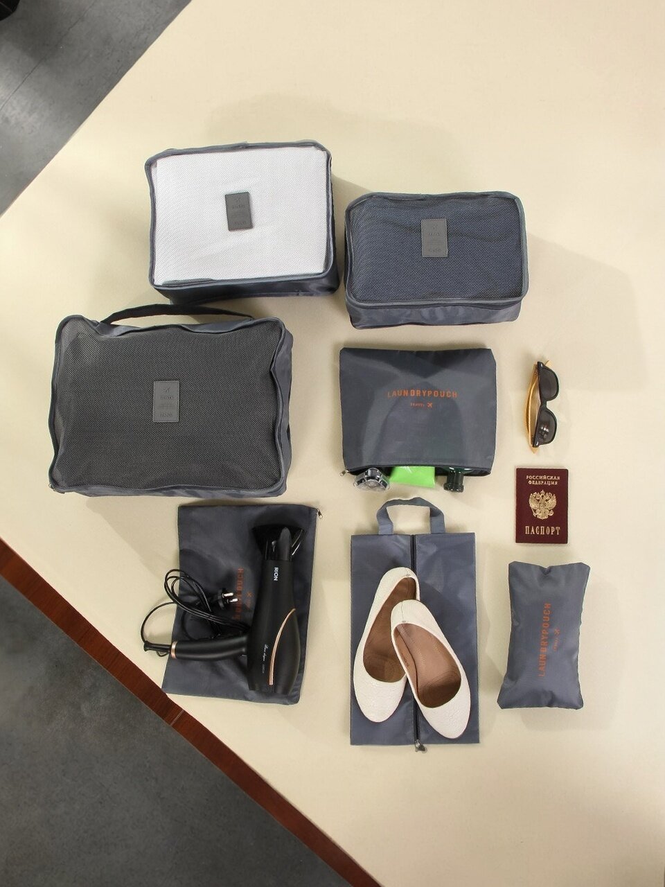 - оптимизация пространства: семь предметов позволяют эффективно распределить вещи в чемодане;