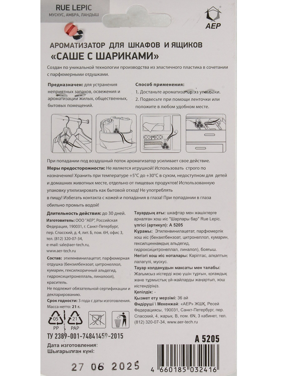 Покупатели часто спрашивают: «Как использовать аромасаше для дома правильно?» — просто поместите пакетик в нужное место, и шарики начнут постепенно выделять аромат, создавая ощущение свежести до нескольких месяцев. Подходит ли для ванной и туалета? Да, саше не требует электропитания, не боится влаги и не содержит агрессивных компонентов, благодаря чему безопасен для текстиля и мебели. В отличие от автоматических освежителей, саше Rue Lepic не требует замены батареек и не привлекает внимание детей или домашних животных.