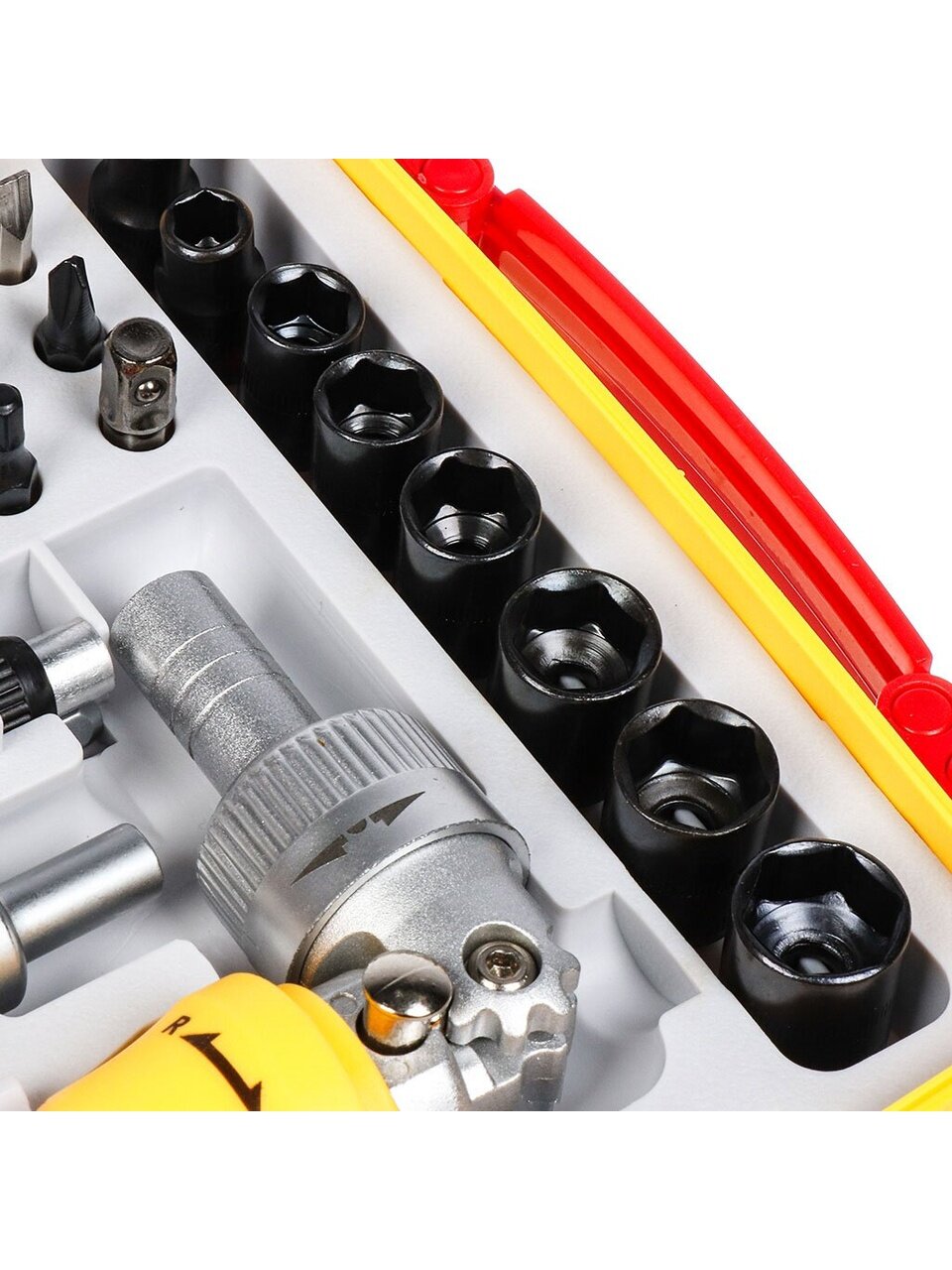 Комплект состоит из 61 предмета, включая реверсивную отвертку, множество бит и торцевых головок, что делает его незаменимым помощником для выполнения различных задач. Качественная CrV сталь гарантирует износостойкость и долговечность каждого элемента. Магнитные свойства способствуют быстрой и легкой замене насадок, а эргономичная рукоятка снижает утомляемость рук. Удобный кейс обеспечивает компактное хранение и легкую транспортировку, что особенно актуально для использования на даче или в гараже.