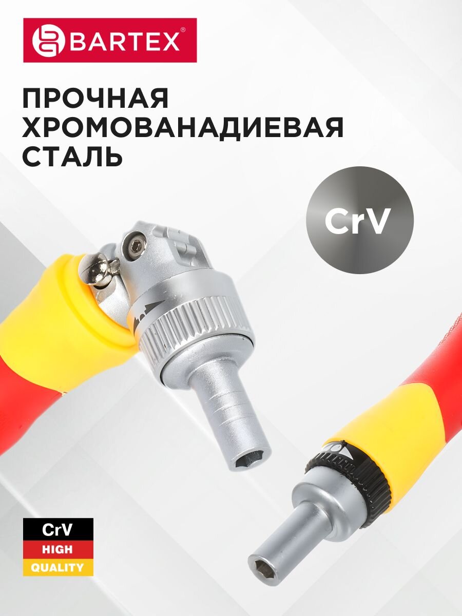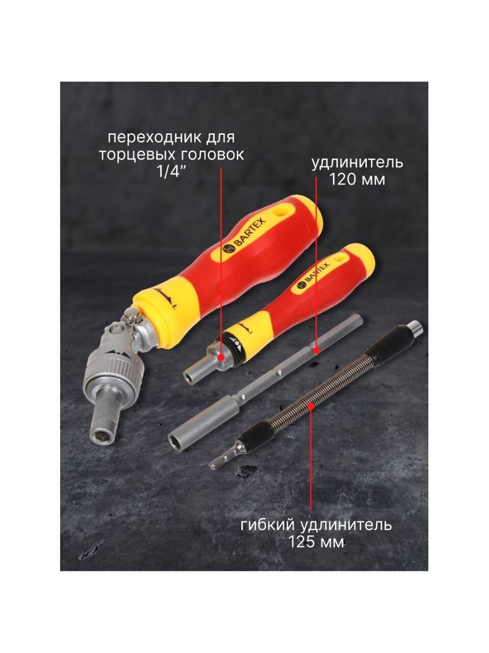 Набор отверток реверсивная с битами, 61 предмет, Bartex, CrV сталь, кейс, 13363 — универсальное решение для любых домашних и дачных работ. Компактный и функциональный комплект идеально подойдет для ремонта мебели, техники, сборки конструкций и обслуживания оборудования. Высокопрочная CrV сталь гарантирует надежность и долгий срок службы всех компонентов, а разнообразие бит и торцевых головок обеспечивает максимальное удобство для выполнения различных задач.