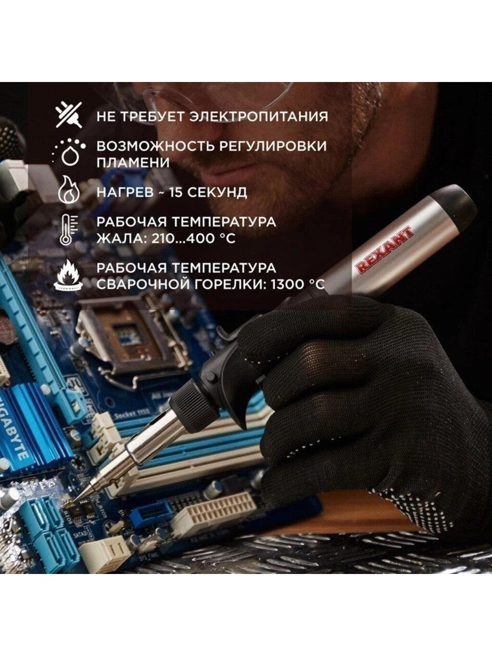 Преимущества паяльника-горелки с пьезоподжигом REXANT 12-0501: