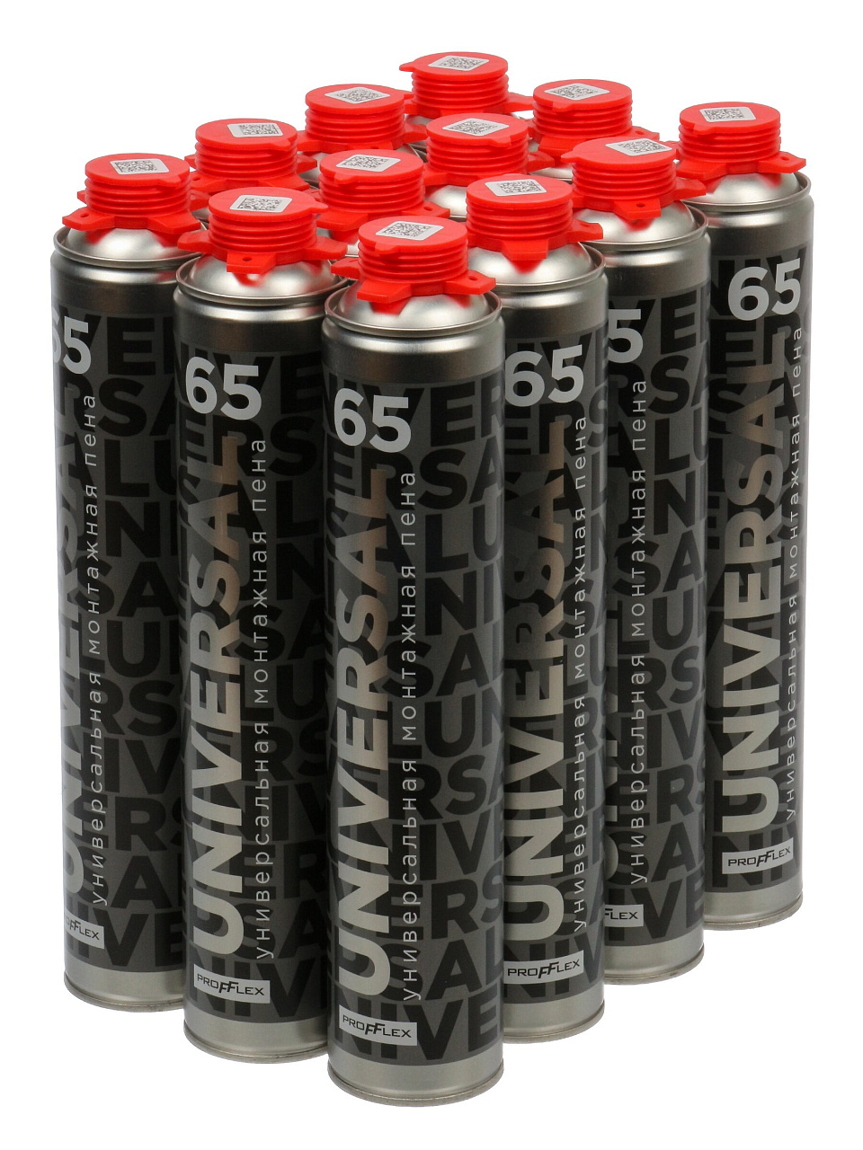 Профессиональная монтажная пена Profflex Universal 65 л, 850 мл, 12 шт — экономия времени и расхода, надёжная теплоизоляция при любых температурах.