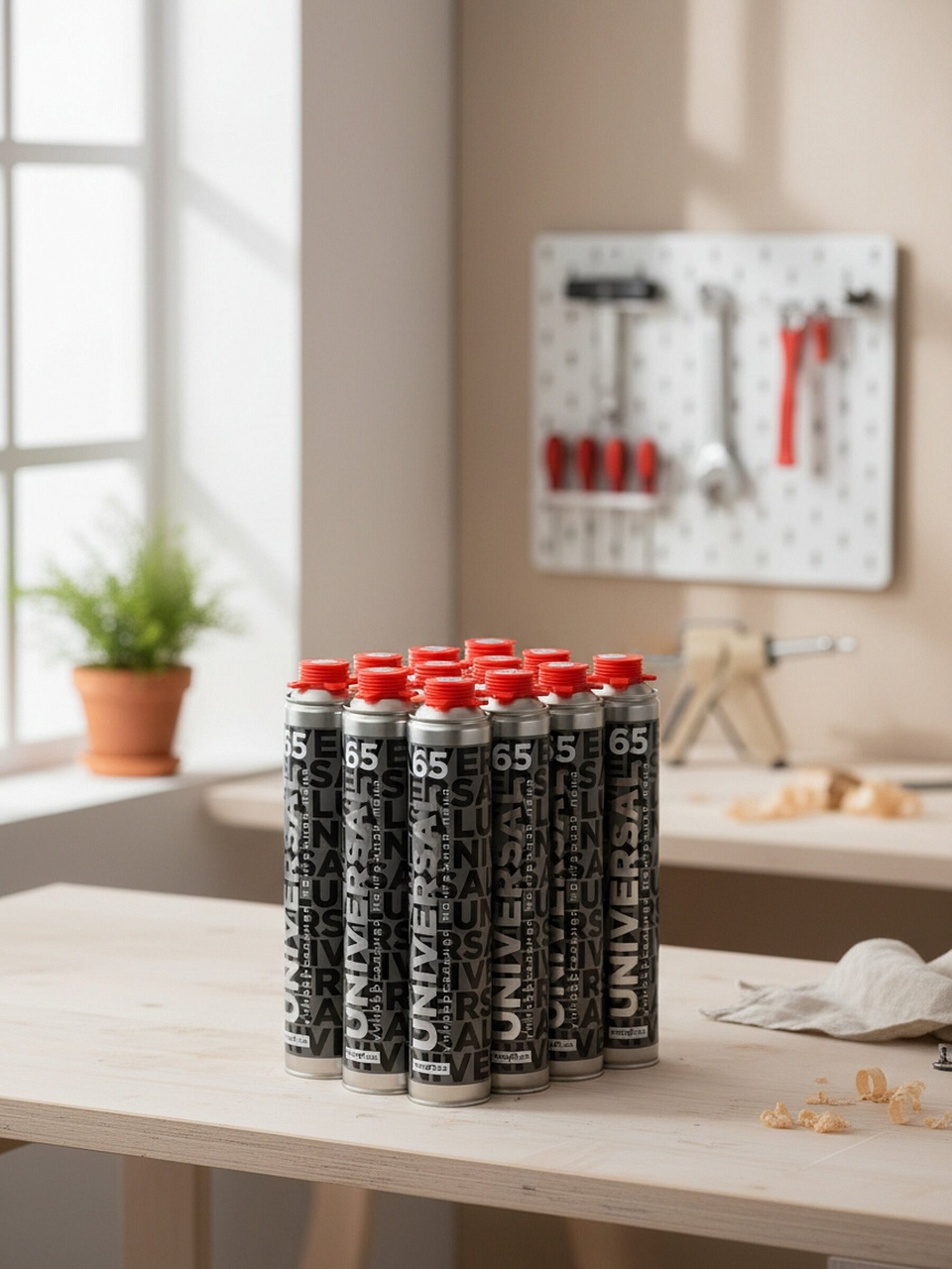 Один баллон объёмом 850 мл даёт до 65 литров готовой пены — этого достаточно для масштабных монтажных и теплоизоляционных работ, упаковка содержит 12 баллонов.