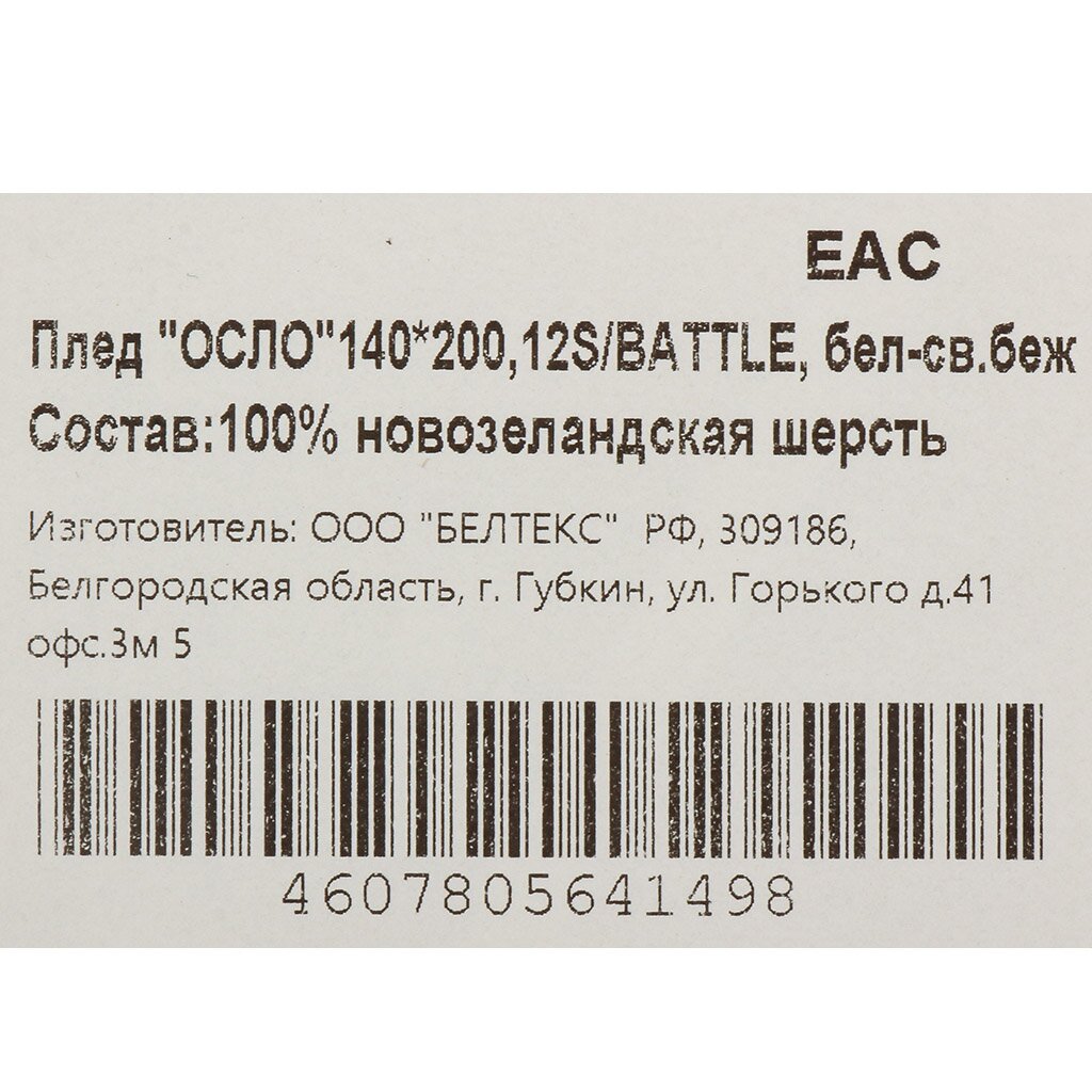 Вы можете приобрести «Плед 1.5-спальный, 140х200 см, 100% новозеландская шерсть, Vladi, Осло, белый, светло-бежевый, 12S/BATTLE» и другие товары в нашем интернет-магазине в Обнинске по низким ценам и с бесплатным самовывозом.