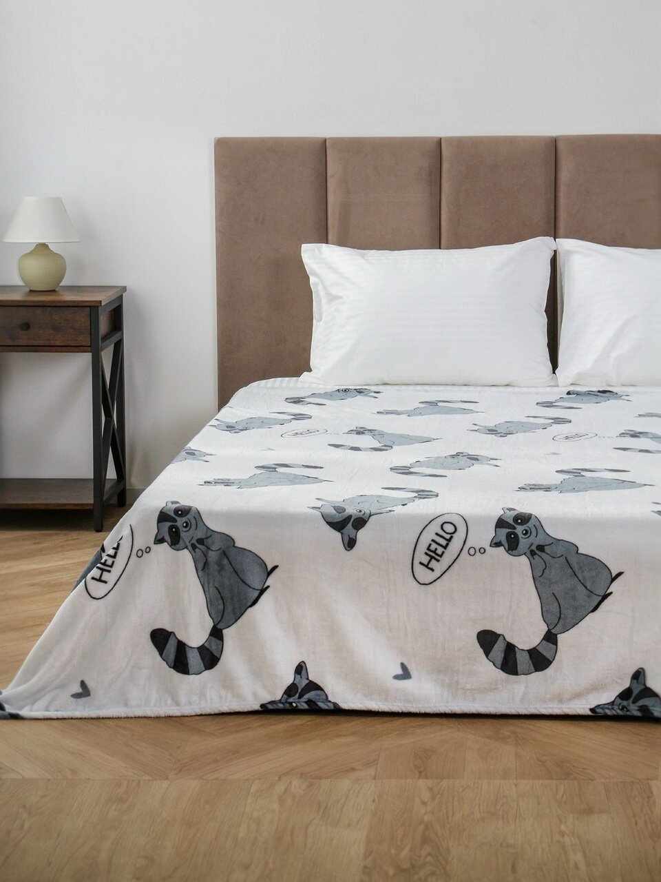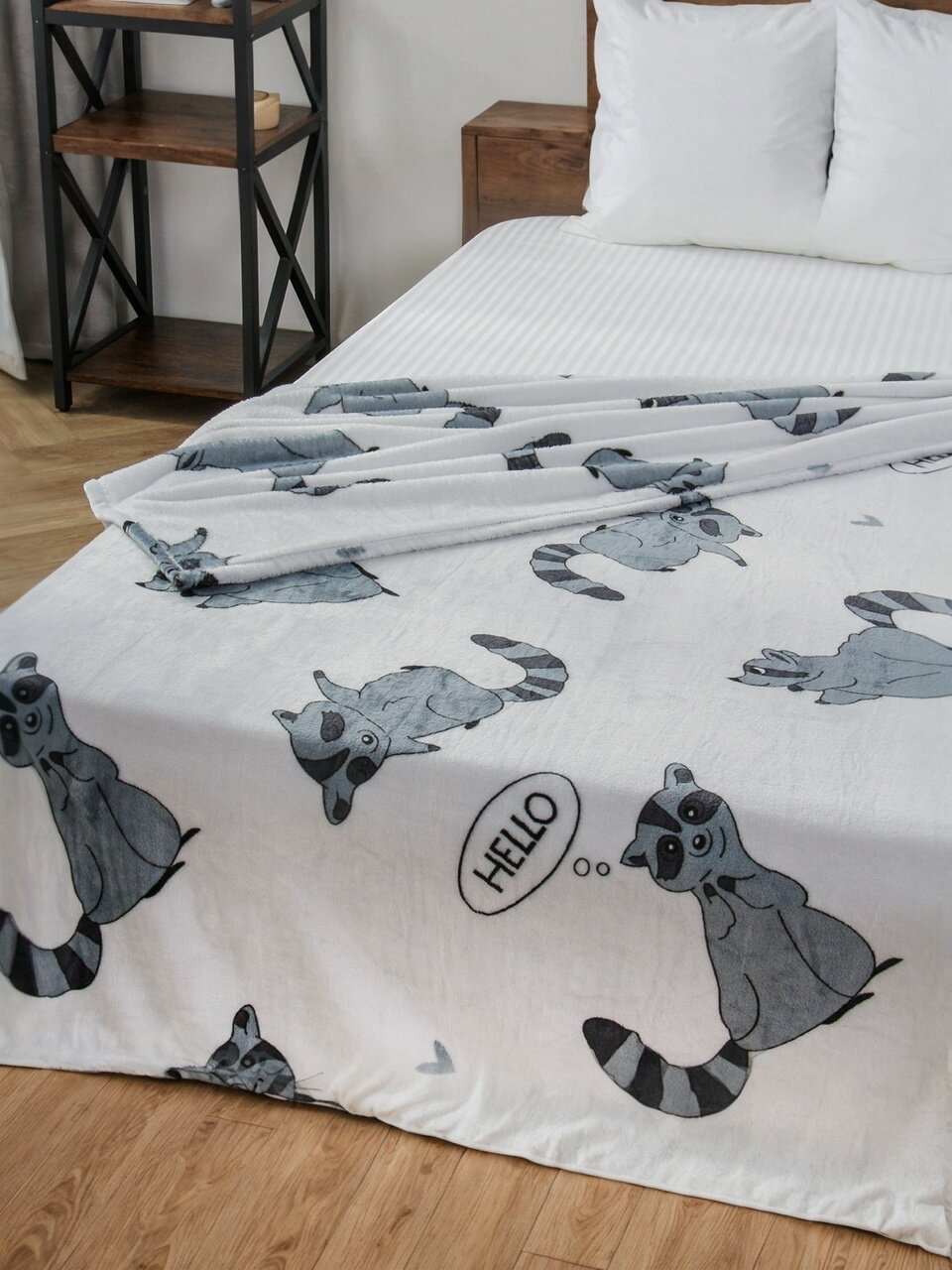 Плед 1.5-спальный Silvano «Енот» 150х200 см — уютное решение для дома и дачи: мягкий велсофт, стильный серый дизайн, недорогая цена, быстрая доставка.