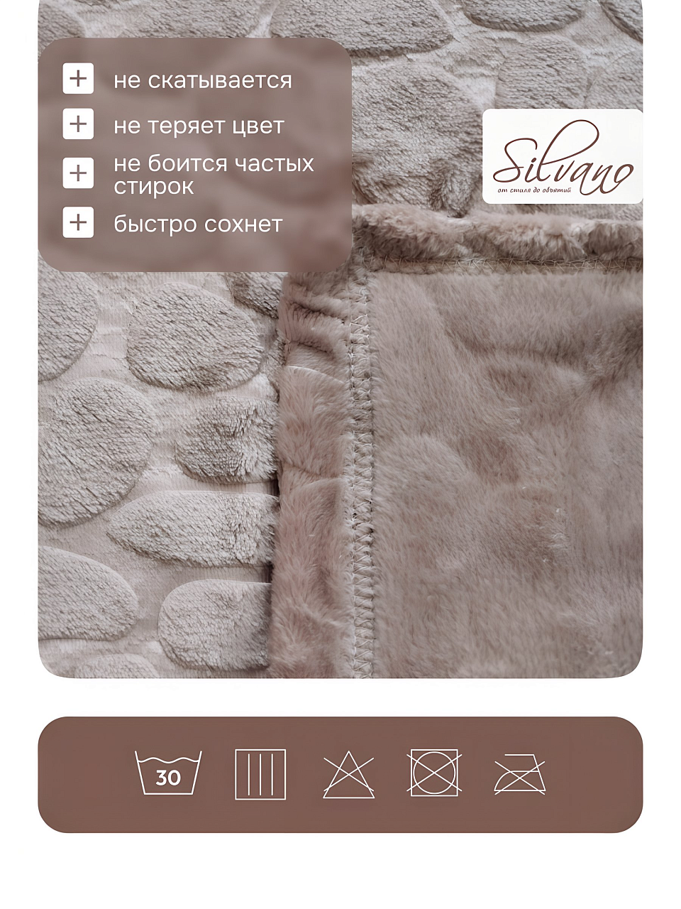 Если вы выбираете, какой плед лучше для подарка или для дома, обратите внимание на долговечность: у Silvano "Камешки" аккуратные швы, стойкий цвет, а благодаря отсутствию отделки и стёжки, он лёгкий и быстро сохнет после стирки. По сравнению с аналогами из смесовых тканей, этот плед проще в уходе и сохраняет презентабельный вид дольше.