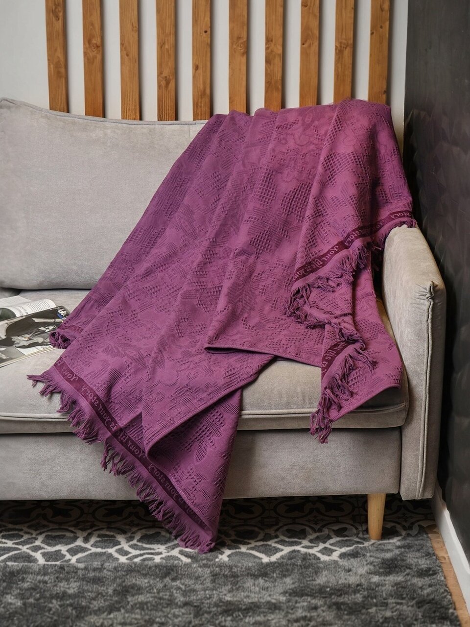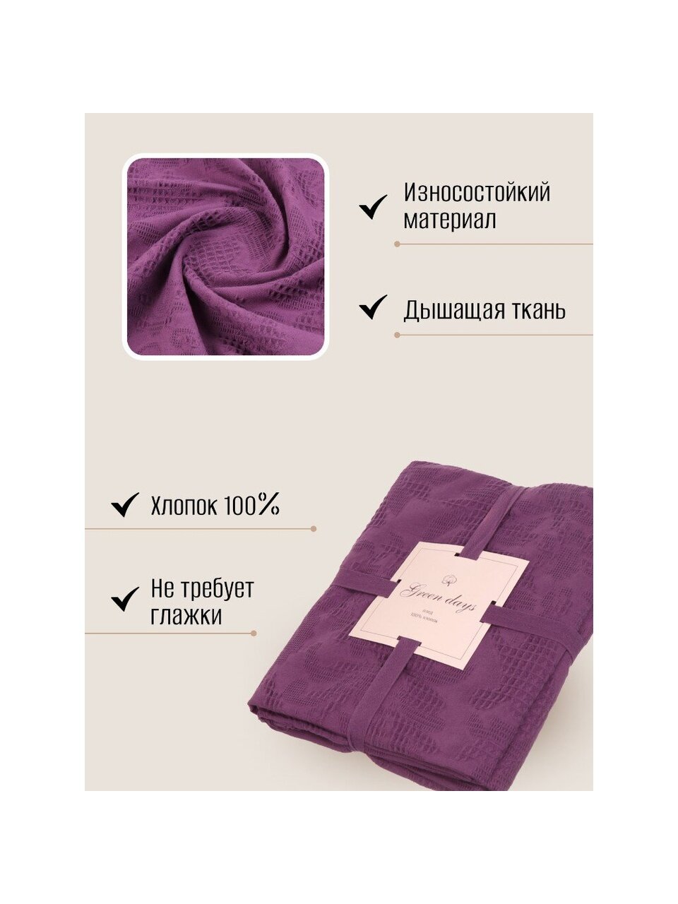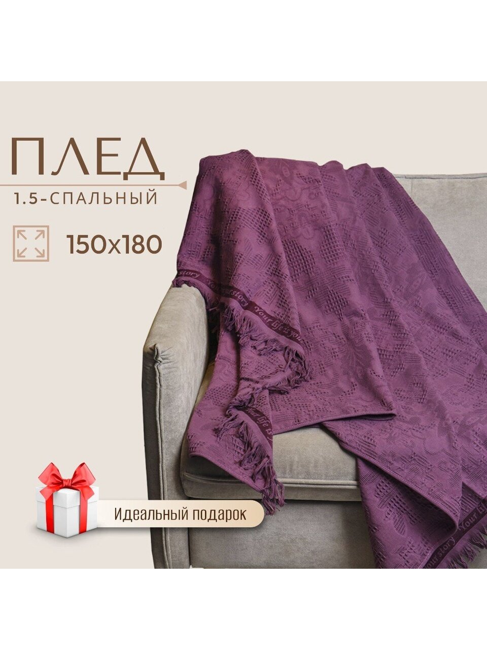 Плед 1.5-спальный, 150х180 см, 100% хлопок, Barkas, Green Days, фиолетовый, AI-2209003