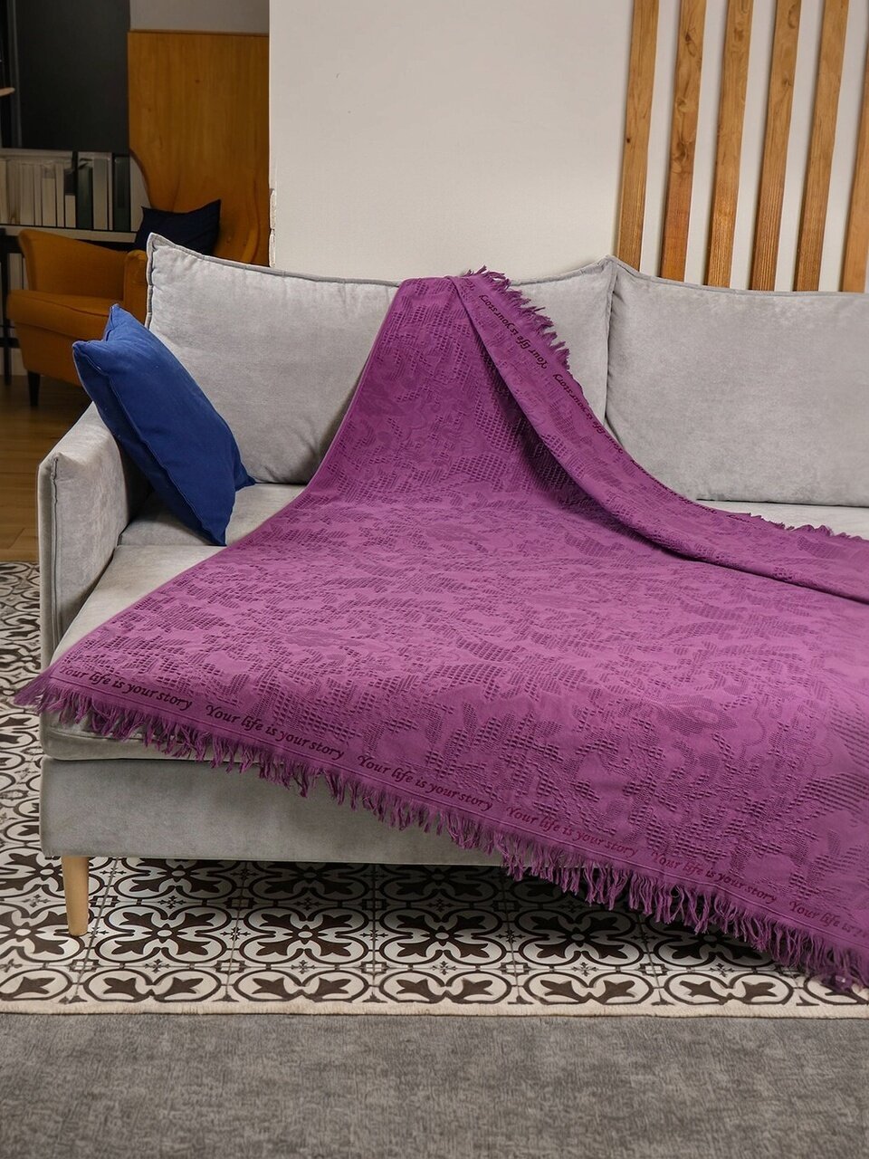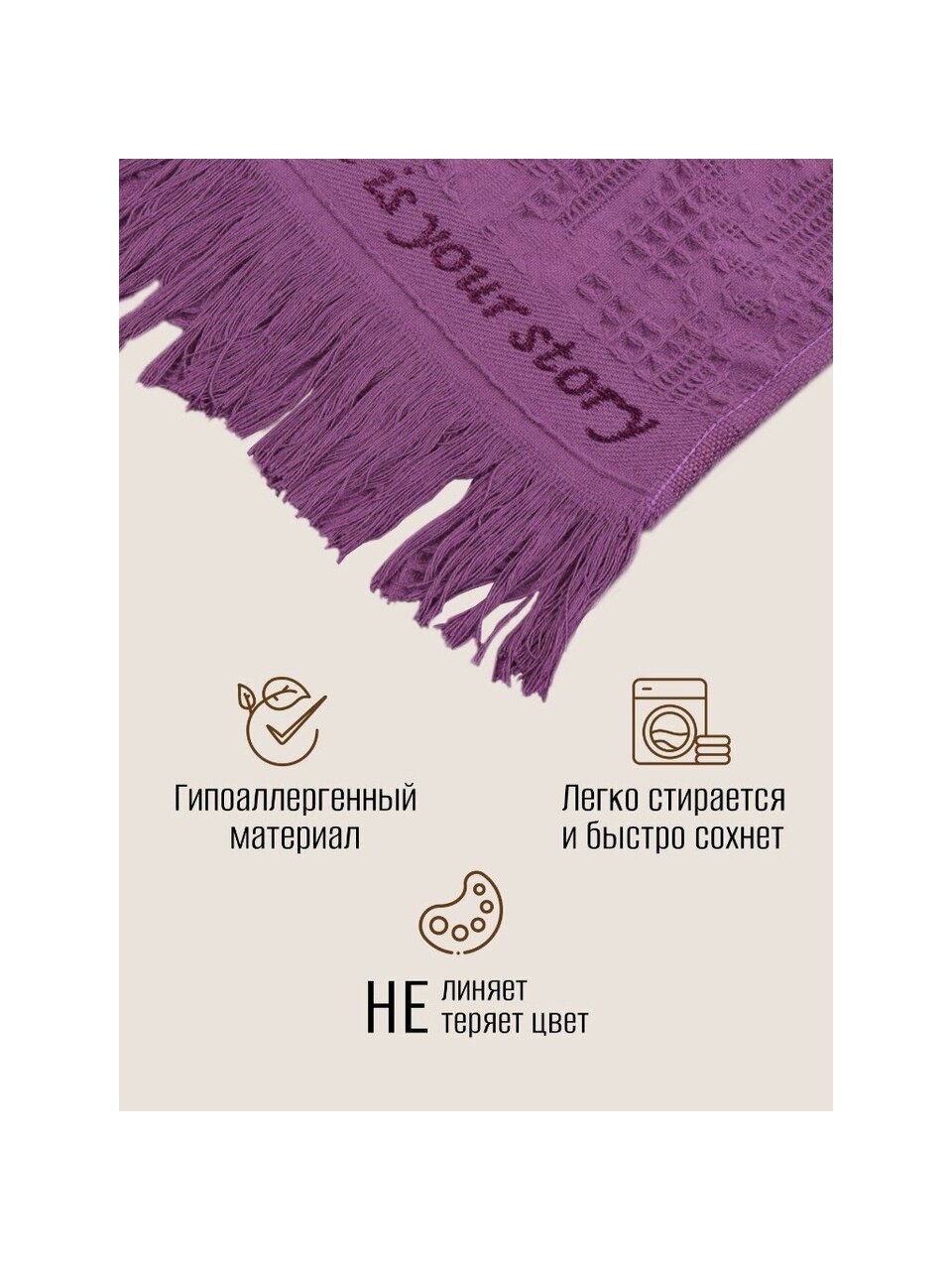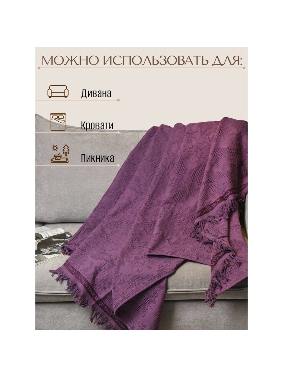 Плед 1.5-спальный, 150х180 см, 100% хлопок, Barkas, Green Days, фиолетовый, AI-2209003