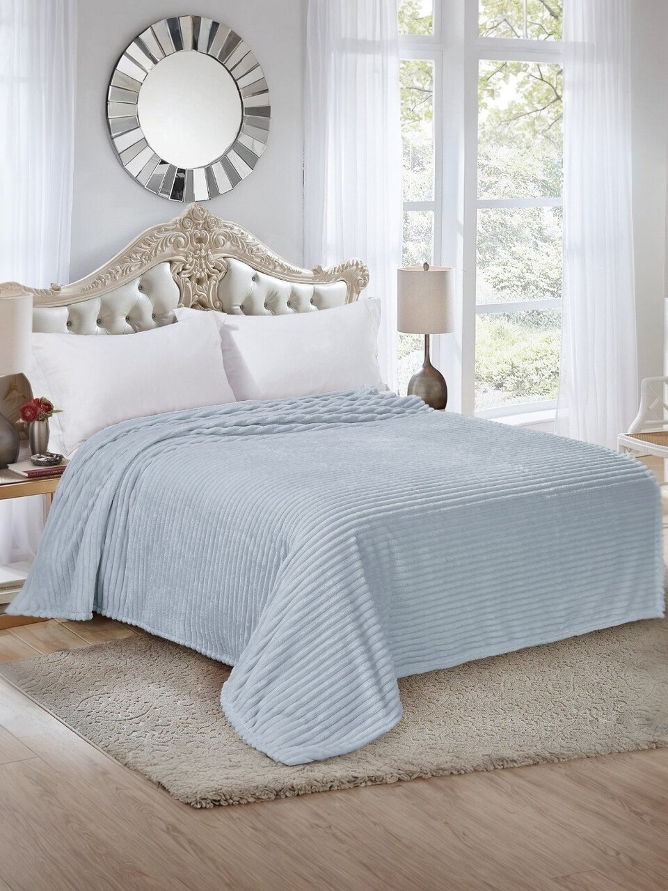 Плед 2-спальный Silvano (180x200 см, велсофт жаккард, светло-голубой) — это выбор покупателей, ценящих уют и современный стиль. Благодаря составу из 100% полиэстера этот плед приятно ложится на кожу, не вызывает аллергии, отлично держит форму и не теряет цвет даже после многократных стирок. Короткий ворс и плотность 280 г/м² делают его особенно тёплым и при этом лёгким — идеальное решение для прохладных вечеров и как декоративное покрывало.