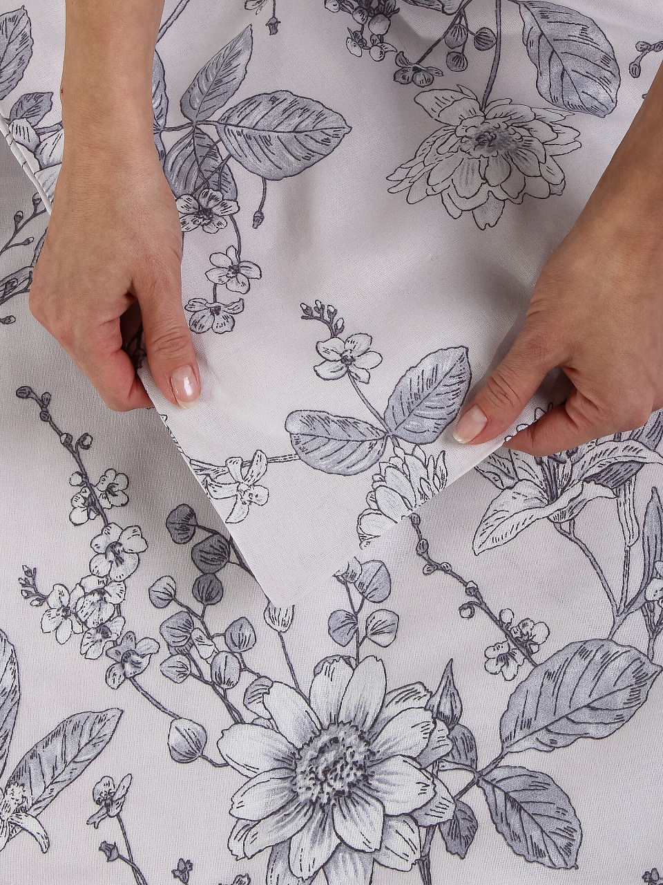 Ткань — 100% хлопок (бязь), плотная, гипоаллергенная, устойчива к частым стиркам и выцветанию.