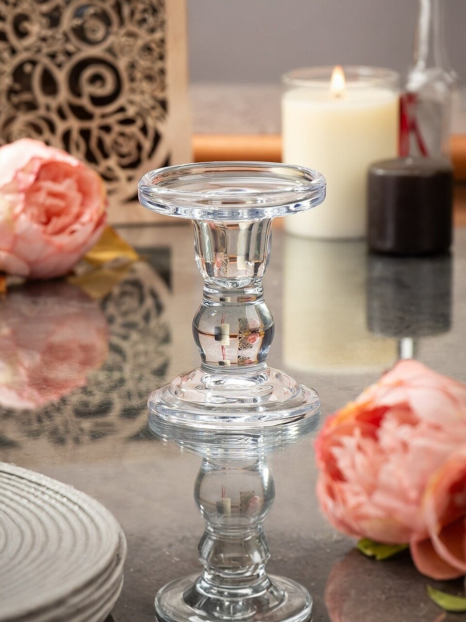 Подсвечник, выполненный из стекла, станет отличным украшением пространства.