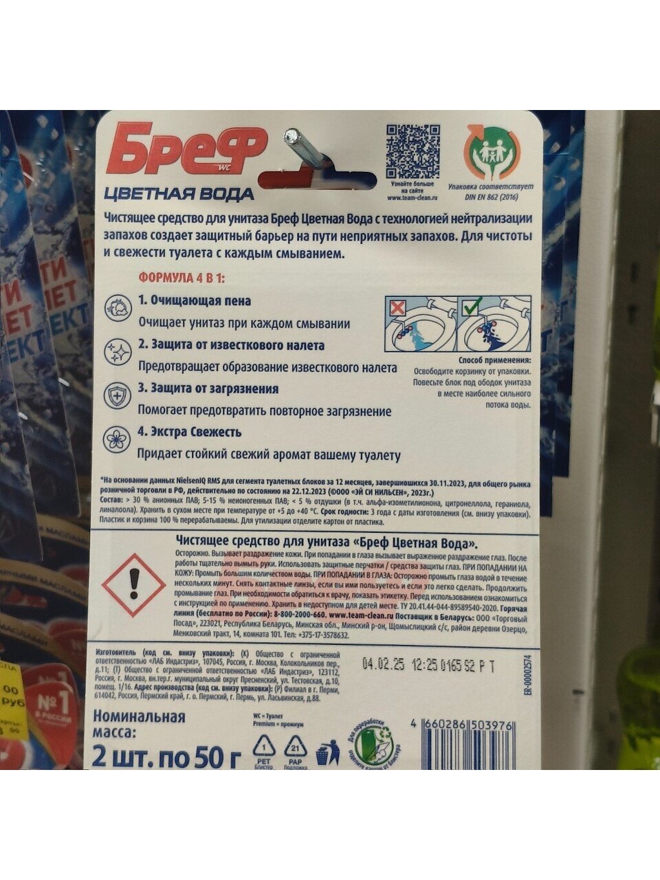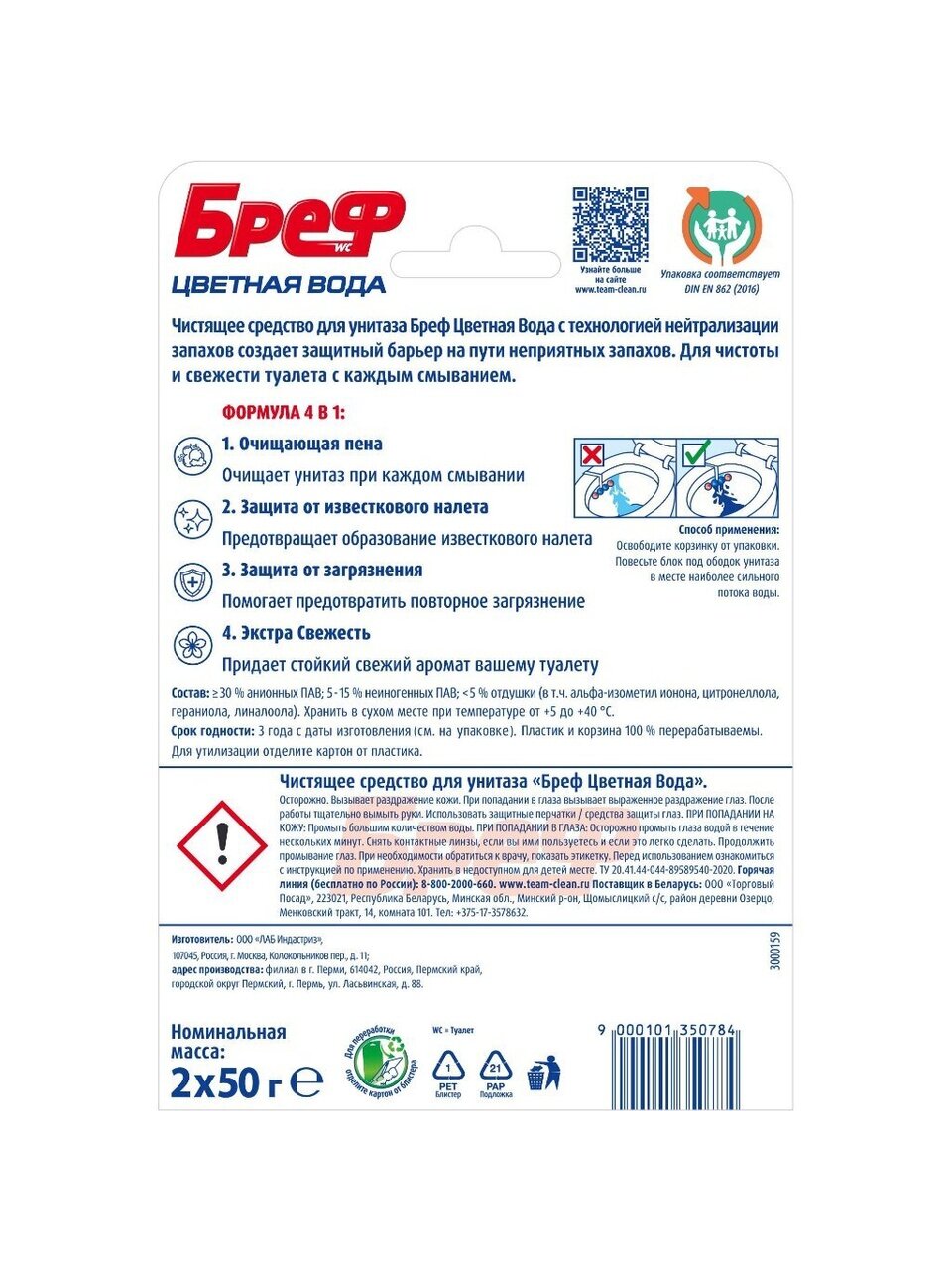 Бреф Колор Актив - видимый результат при каждом смывании.