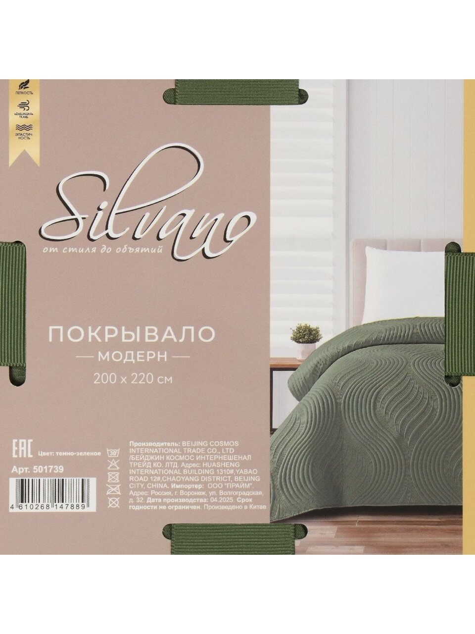 Покрывало евро Silvano Модерн 200х220 см — стильный акцент для спальни. Практичный полиэстер, стеганое исполнение, глубокий темно-зеленый цвет. Легко ухаживать, подходит для дома и дачи.