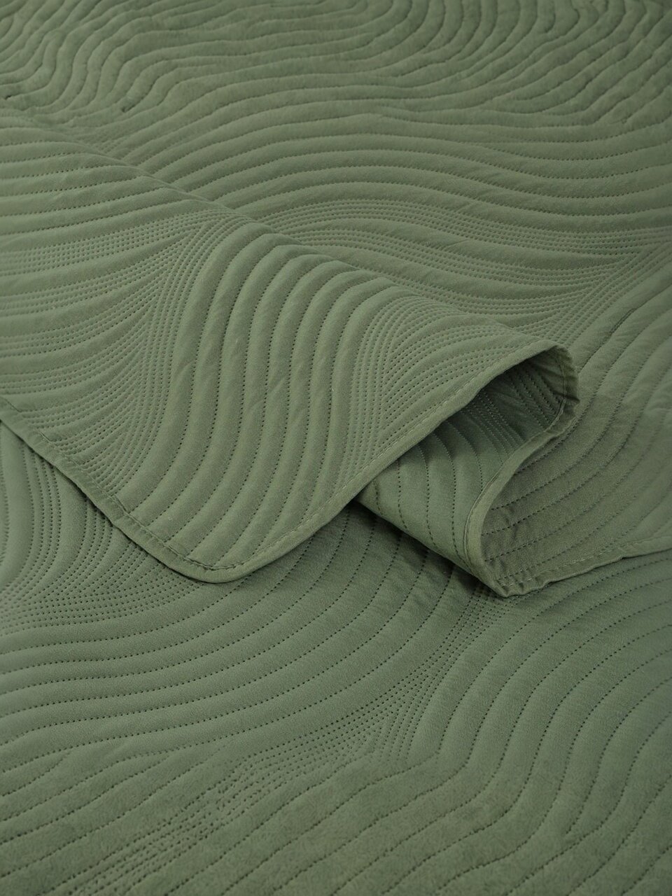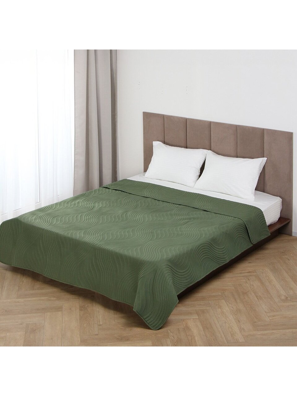 Размер 200х220 см (евро), цвет — темно-зеленый, дизайн минималистичный, однотонный с узором, подходит для современных интерьеров.