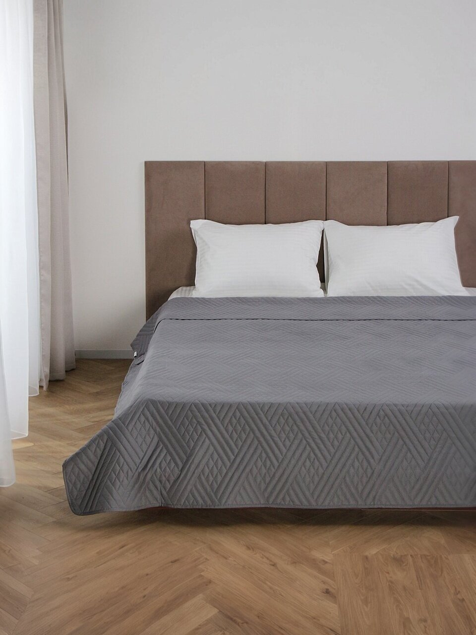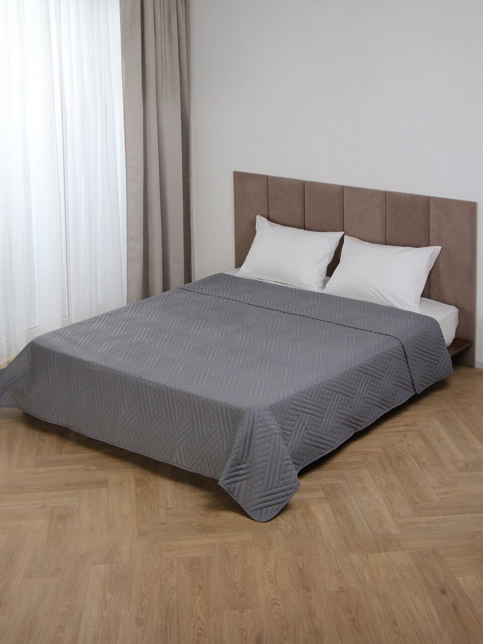 - Современный минималистичный дизайн: темно-серое покрывало Silvano Сетка гармонично впишется в любой интерьер.