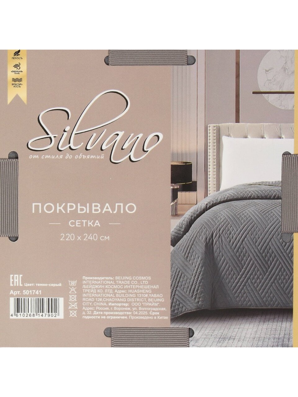 Вы можете приобрести «Покрывало евро, 220х240 см, 100% полиэстер, стеганое, Silvano, Сетка, темно-серое» и другие товары в нашем интернет-магазине в Россоши по низким ценам и с бесплатным самовывозом.