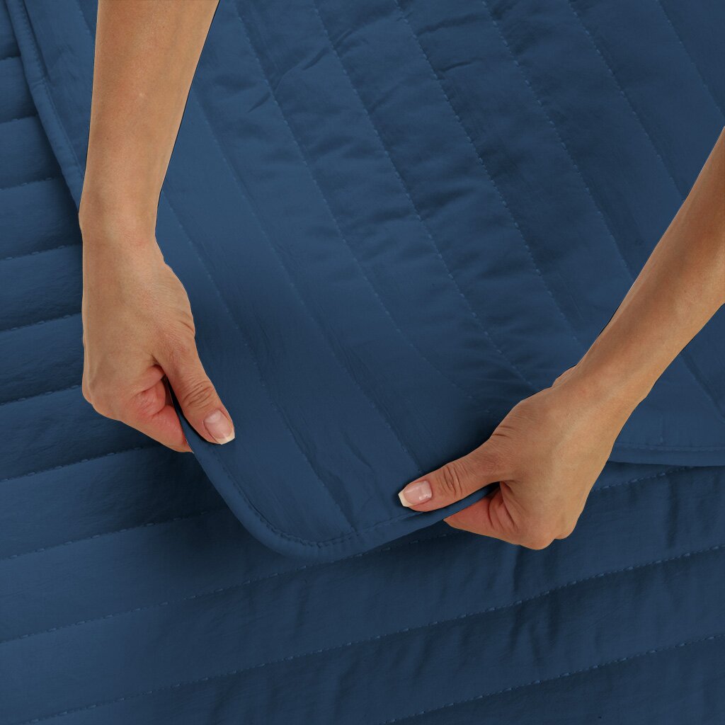 - Оптимальный размер евро (240×260 см) — покрывает даже большие двуспальные кровати, не скатывается и сохраняет форму.