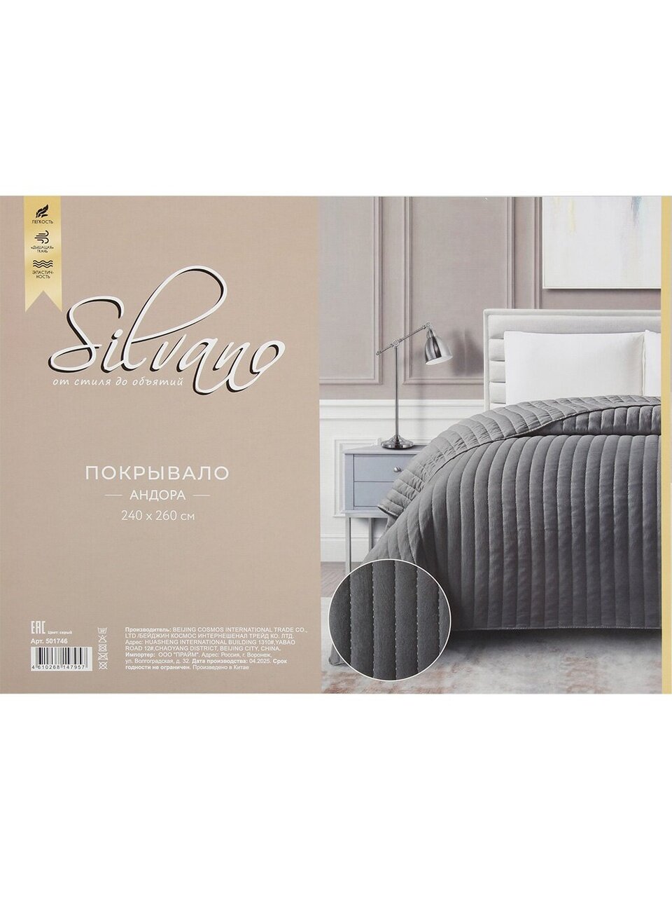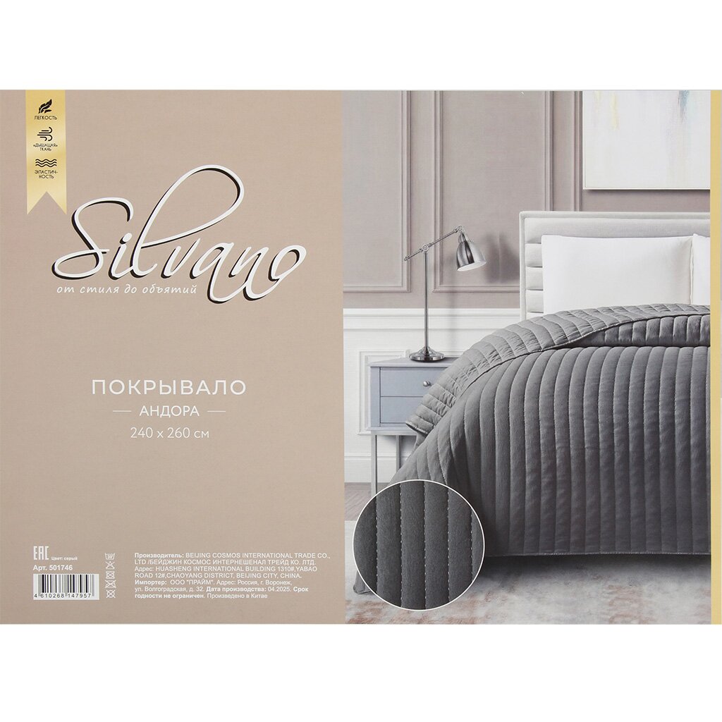 Покрывало евро Silvano Андора 240х260 см: серый минимализм для стильного интерьера — защита мебели, уют и практичность по доступной цене