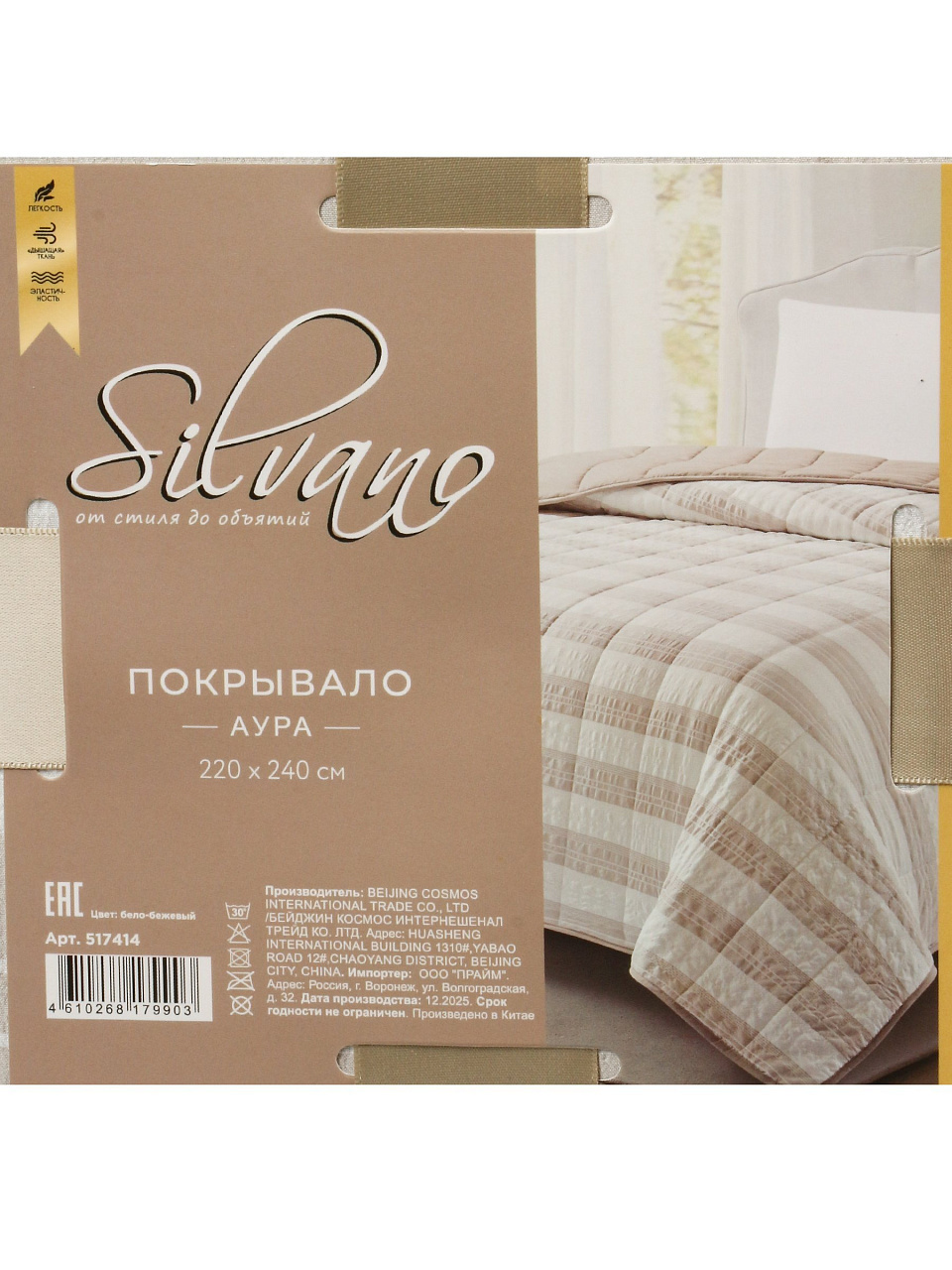 Покрывало Silvano Аура 220х240 см: стильное евро-покрывало для спальни и гостиной. Создайте уют с фактурным дизайном в бело-бежевых тонах.