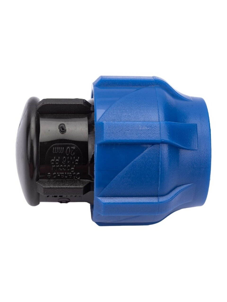 Компрессионная заглушка выполнена из полипропилена и применяется для закрытия торцевой части полиэтиленовой трубы.