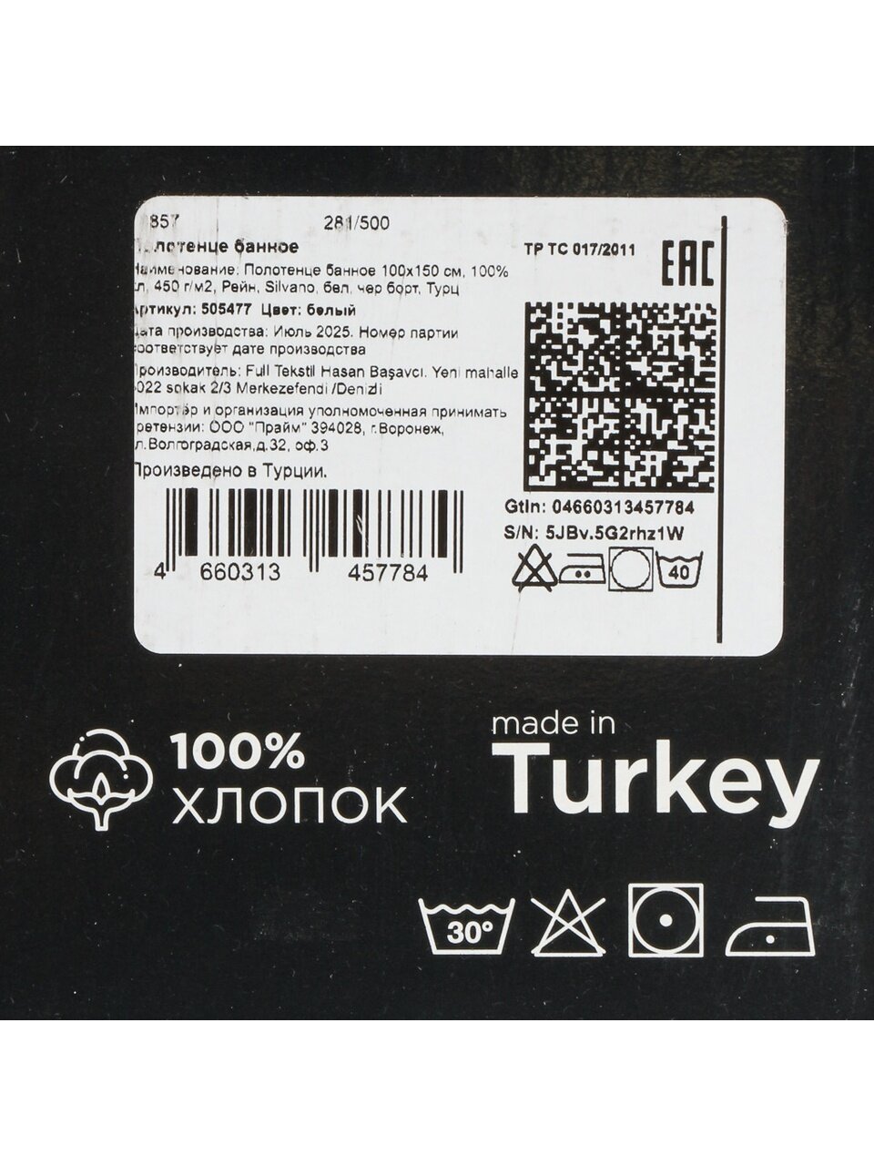 Вы можете приобрести «Полотенце банное 100х150 см, 100% хлопок, 450 г/м2, Рейн, Silvano, белое, черный борт, Турция» и другие товары в нашем интернет-магазине в Таганроге по низким ценам и с бесплатным самовывозом.