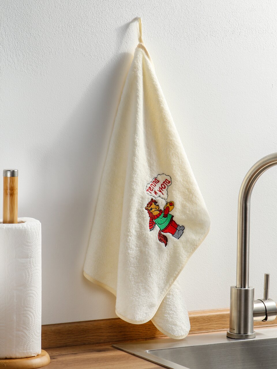 Махровое кухонное полотенце Dinosti 40х70 см из микрофибры: быстро впитывает, не оставляет ворса, дарит уют и чистоту в доме по доступной цене.