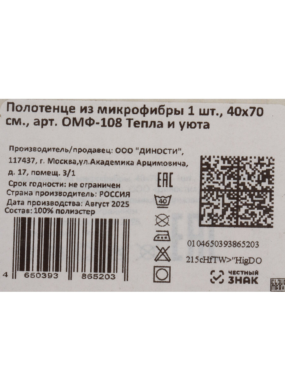 Полотенце кухонное Dinosti: размер 40х70 см, материал — микрофибра (100% полиэстер), махровая фактура, белый цвет, произведено в России.