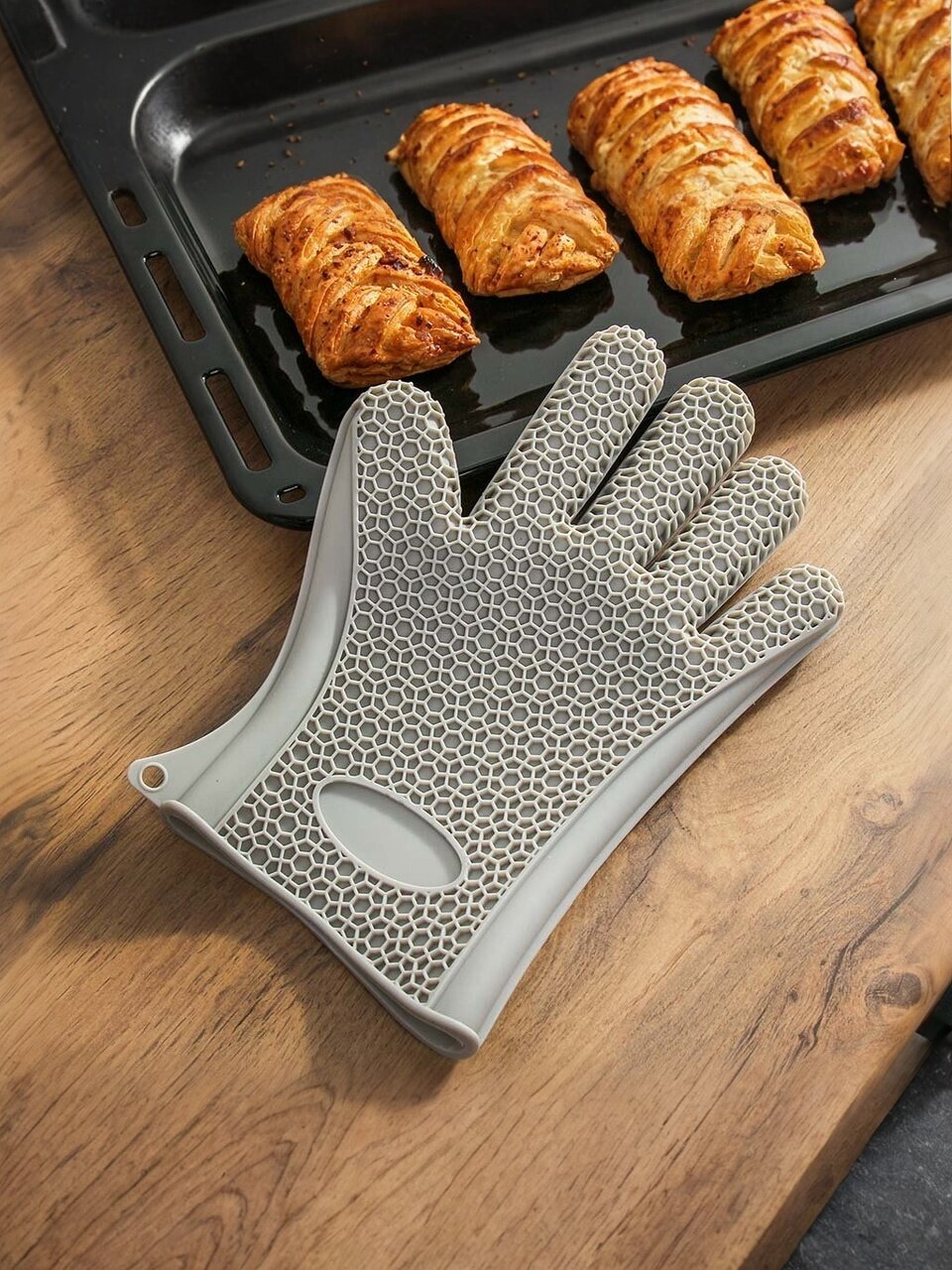 Силиконовая прихватка-рукавица 27х20х2,5 см — надежная защита рук на кухне: не скользит, выдерживает жару до 230°C, легко моется, подходит для дома и дачи.