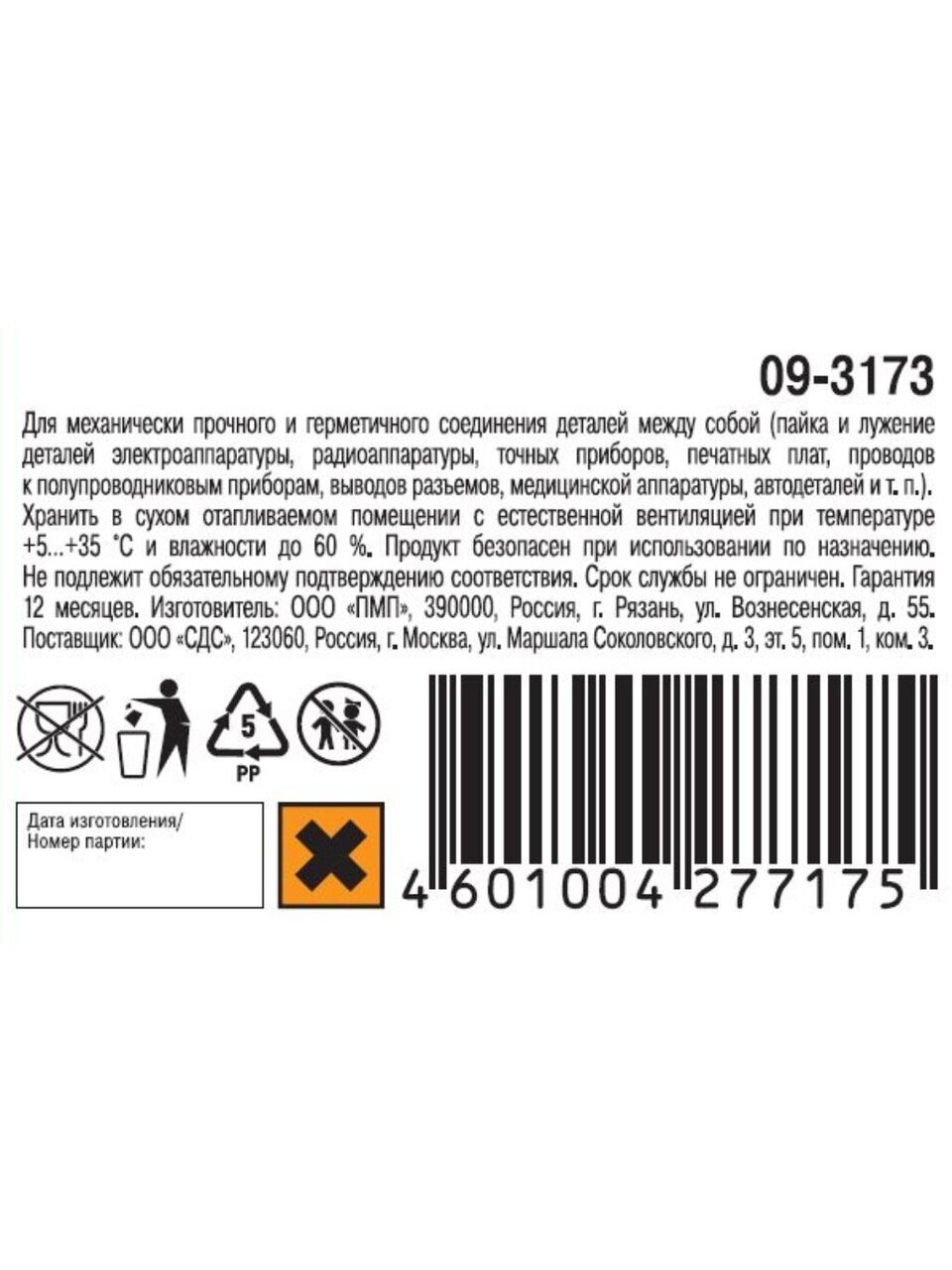 - встроенная канифоль обеспечивает легкое нанесение и чистое соединение;