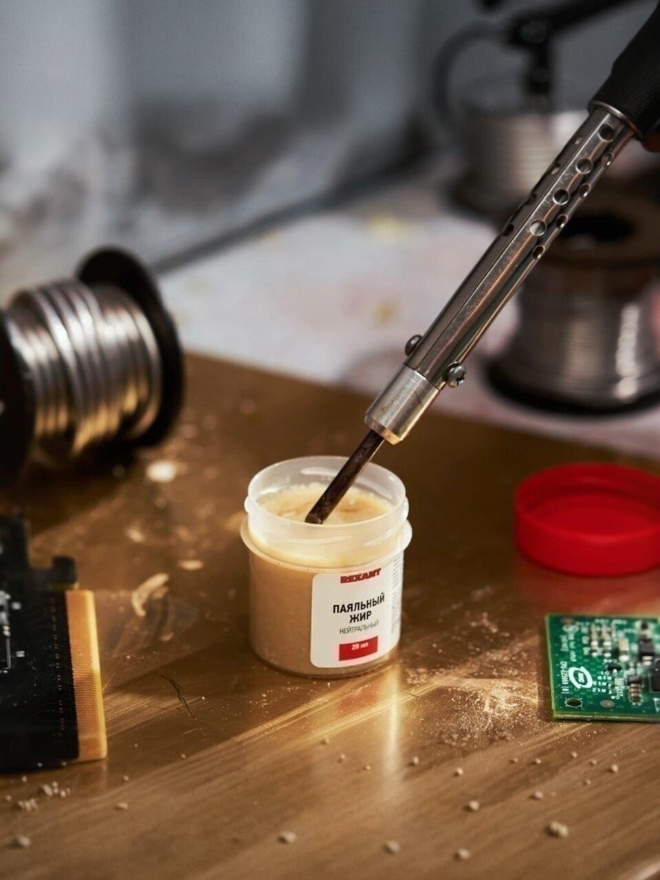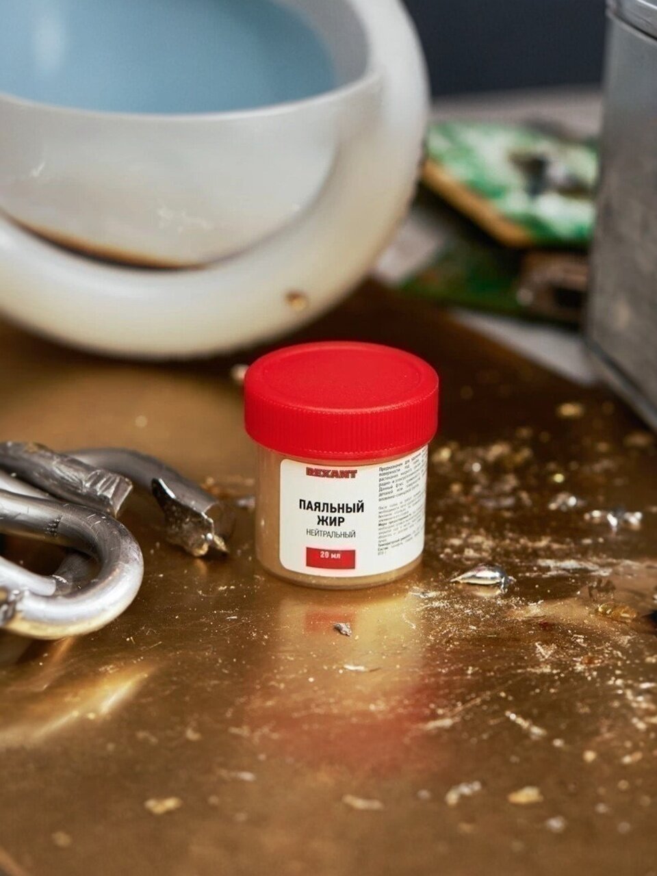 Флюс для пайки REXANT, Паяльный жир, 20 мл — надежное решение для качественной пайки токопроводящих деталей телефонной, радио- и электронной аппаратуры. Оптимальный состав: канифоль, стеарин и пластификатор обеспечивает отличную смачиваемость и легкость работы. После пайки смывка не требуется, что экономит время и силы. Температура наибольшей активности: +180…+300°С.